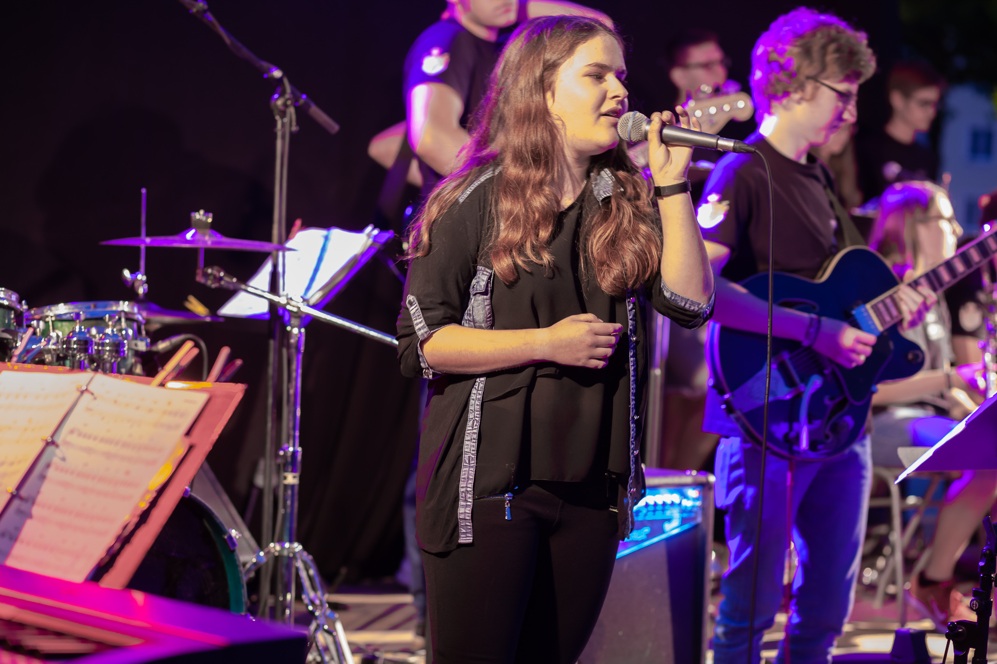 Einen wundervollen Sommerabend mit Wein und guter Musik, ein Event der besonderen Art! Einmal mehr zeigte die Freudenhainer Big Band, was in ihr steckt. Jedes Jahr aufs Neue verlassen gut ausgebildete Musiker die Big Band und man wartet schon gespannt darauf, was folgt. In diesem Jahr war es eindeutig die dunkle, einfühlsame Stimme der Big Band, Alina Striedl, die die Zuhörer in ihren Bann zog. Ein besonderes Erlebnis ist es auch, die neuen Talente aus der Unterstufe neben den Abiturienten spielen zu hören, die vielleicht das letzte Mal dabei sind.