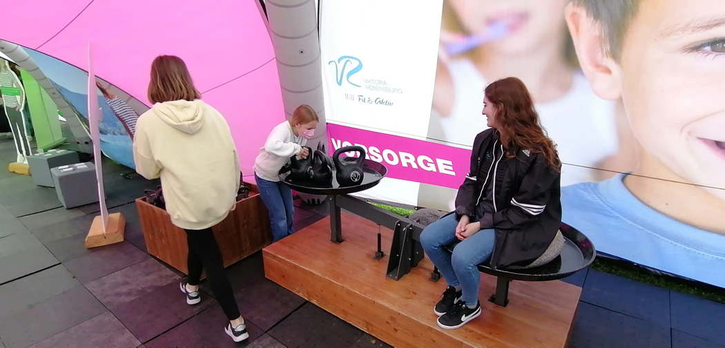 Dabei traten sie in einem Quiz gegeneinander an, während sie durch das Treten auf Fahrrädern die dafür notwendige Energie produzierten, schulten ihre Balance und Gleichgewichtsfähigkeit auf einer Slackline oder duellierten sich mit mentaler Stärke an einer speziellen Kugelbahn.