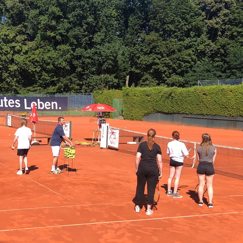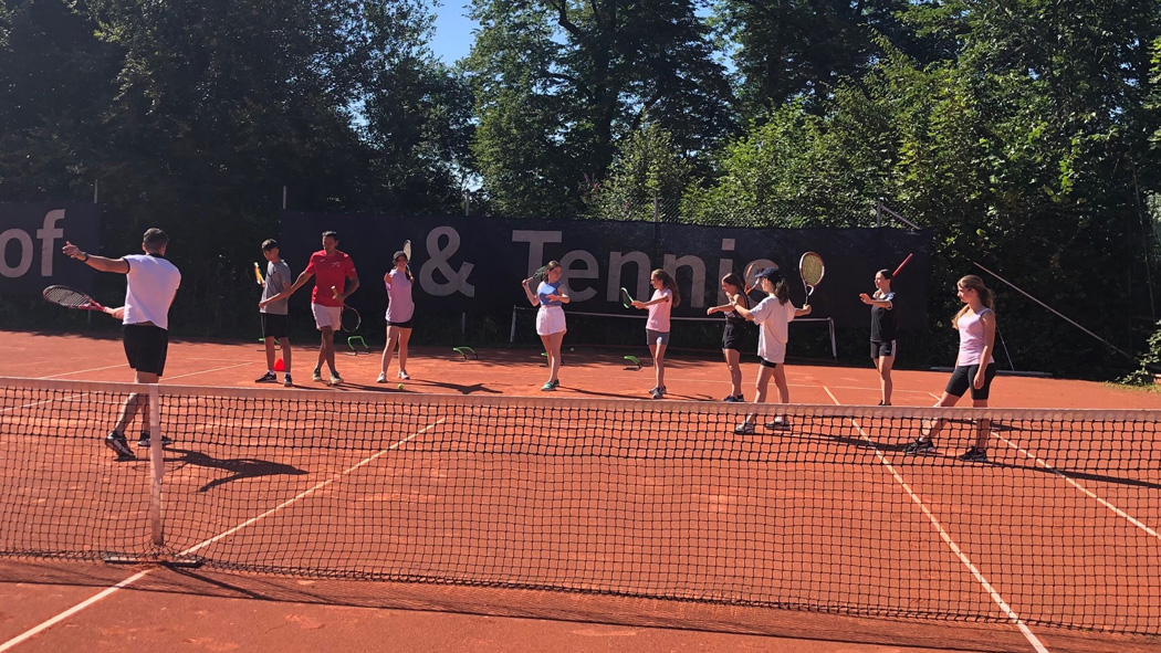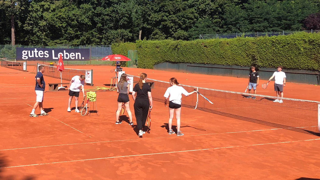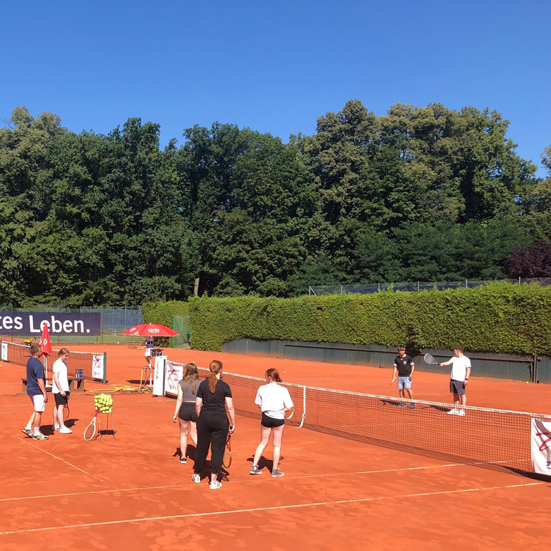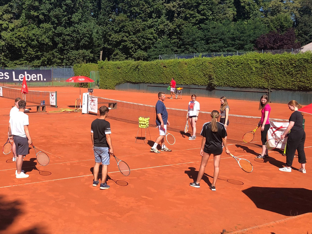 Die 10. Klassen probierten sich am 19.7.22 bei sommerlichen Temperaturen im benachbarten Tennis-Club Rot-Weiß unter Anleitung von drei Trainern der Tennis Academy Lukas Maric. In 1,5h schnupperten die Jungen und Mädchen sowohl technisch als auch spielerisch in diese doch recht anspruchsvolle Sportart. Einen großen Dank sprechen wir an dieser Stelle der Tennis Academy aus, die dieses kostenlose Schnuppertraining bereitwillig angeboten und ermöglicht hatte.