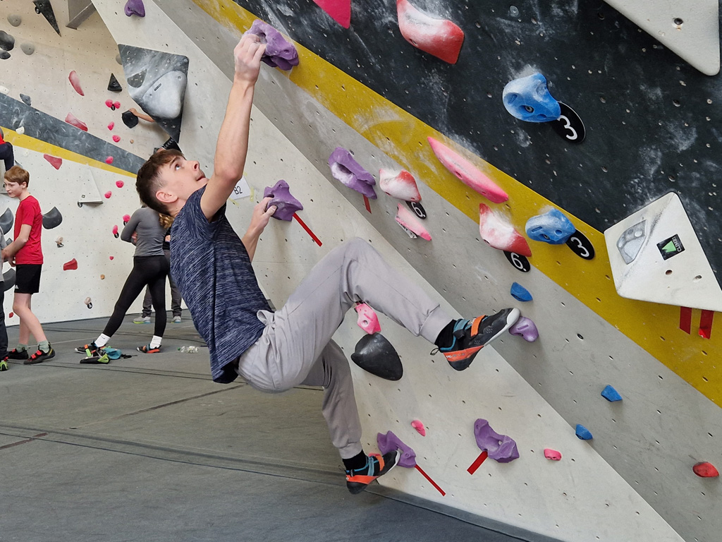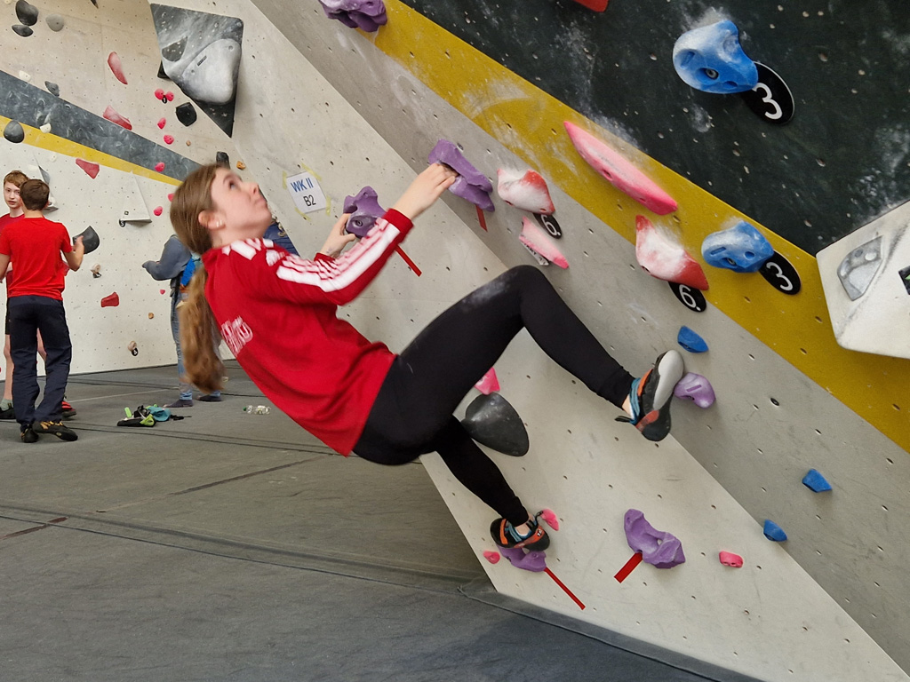 Am Donnerstag, den 27.04. nahmen die Kletterinnen und Kletterer der Wettkampfklassen II und III am Bouldercup für Stadt und Landkreis Passau teil. In verschiedenen Schwierigkeitsgraden versuchten die Schülerinnen und Schüler auf den teilweise anspruchsvollen Routen Punkte für ihr Team zu holen. Dabei bekam man für das Durchklettern einer Route im ersten Versuch 10, nach mehrmaligen Versuchen 5 und beim Erreichen einer Zone, also eines gewissen Griffes, 3 Punkte. Jedes Team hatte für eine Route maximal 15 Minuten Zeit. Die Schülerinnen und Schüler des Auersperg-Gymnasiums konnten dabei voll überzeugen und freuten sich am Ende in beiden Wettkampfklassen über einen sehr starken Platz 2.