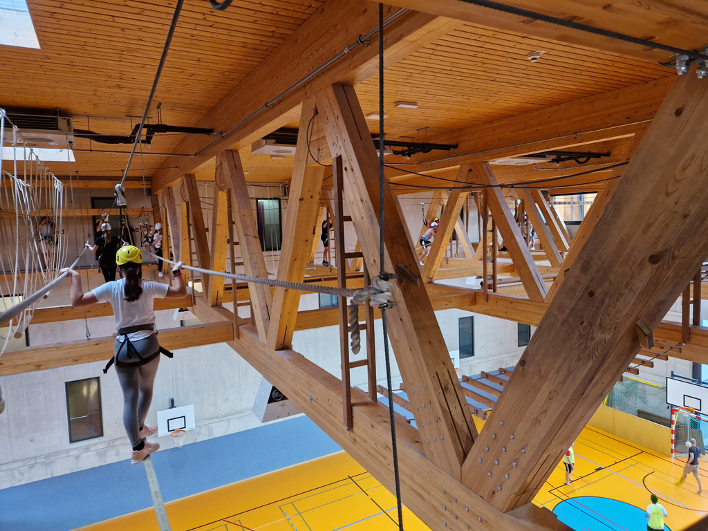 Das Wetter am Donnerstag zeigte sich von seiner schlechteren Seite, weshalb die geplante Wanderung auf die Schmittenhöhe auf freiwilliger Basis angeboten wurde. Dafür fanden sich lediglich zwei Schülerinnen und ein Schüler. Die restlichen Schülerinnen und Schüler traten in verschiedenen Sportturnieren gegeneinander an oder wagten sich in den Kletterpark über den Indoor-Spielfeldern. Aufgrund des gigantischen Angebots der Unterkunft kam auch an diesem Tag keine Langeweile auf. Als Überraschung fand das Abendessen am Donnerstag in Form eines BBQs statt, bei dem diverse Grillspezialitäten serviert wurden.