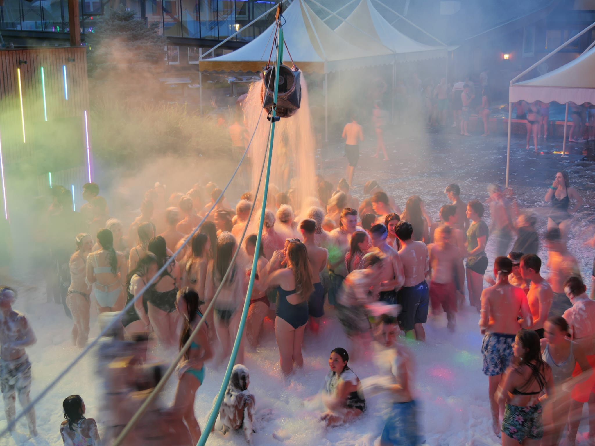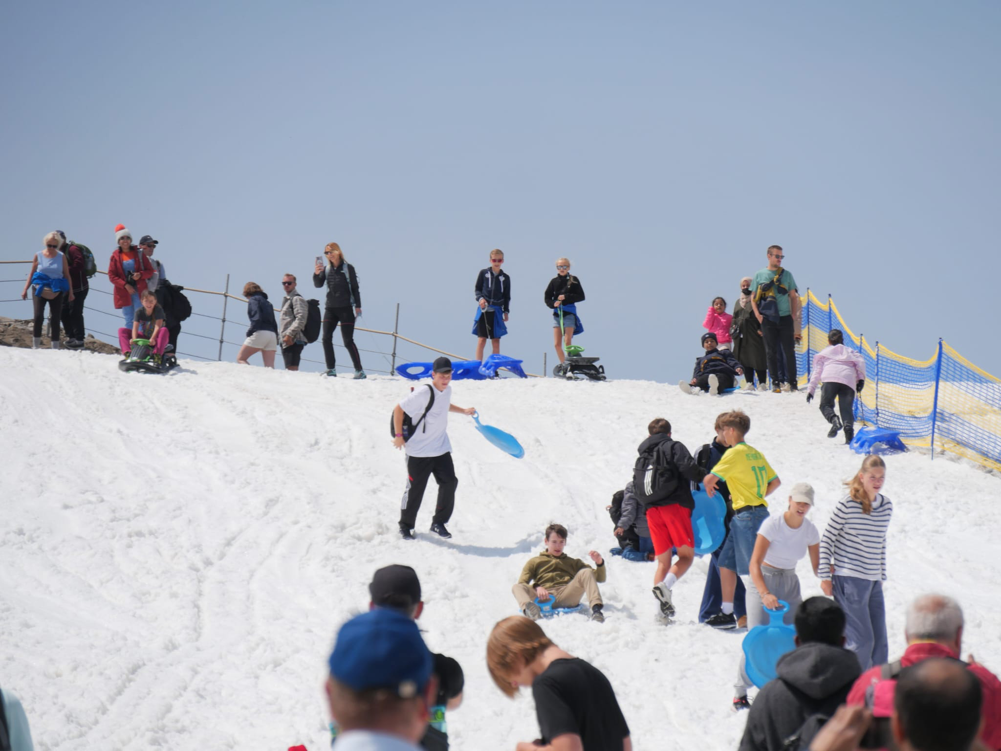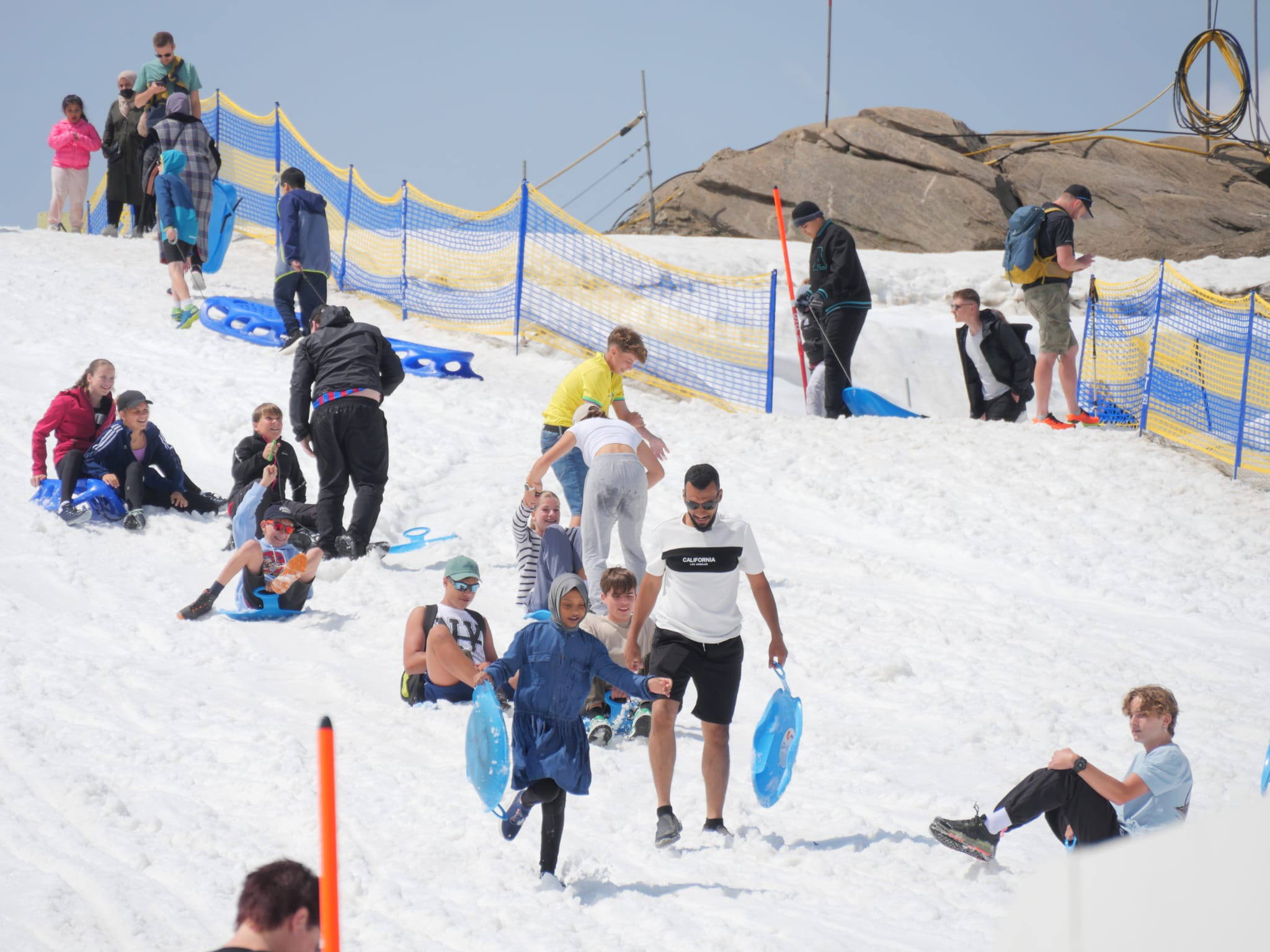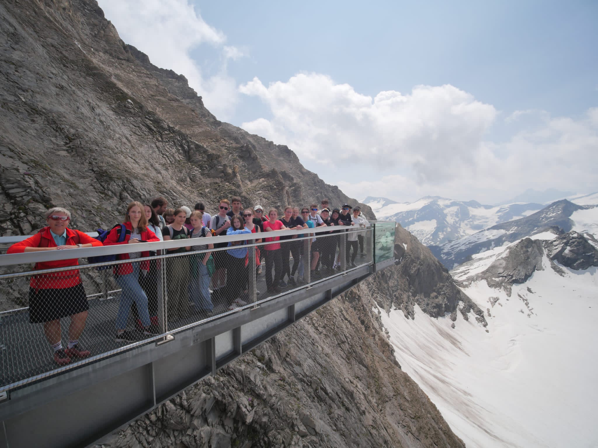 Am Dienstag stand das Kitzsteinhorn auf dem Programm. Nach der Wanderung zur Talstation begaben sich alle mit verschiedenen, teilweise spektakulären Bergbahnen bis zum Gipfel auf über 3000m! Die Gelegenheit, im Juli Schlitten zu fahren, ließen sich viele Schülerinnen und Schüler nicht entgehen. Die atemberaubende Aussicht auf den Plattformen der Gipfelwelt 3000 diente natürlich als beliebtes Fotomotiv. Anschließend begab man sich wieder auf Talfahrt. Einige Schülerinnen und Schüler hatten vom Rodeln noch nicht genug und nutzten die Sommerrodelbahn „Maisi-Flitzer“ zur rasanten Abfahrt ins Tal. Danach wurde bei sommerlichen Temperaturen wieder zur Unterkunft zurückgewandert, wo sich die Schülerinnen und Schüler sportlich betätigten oder am Pool entspannten. Nach dem Abendessen wartete dann ein Highlight für viele Schülerinnen und Schüler: die Schaumparty! Mit DJ und guter Stimmung wurde bis in den Abend getanzt und gefeiert.