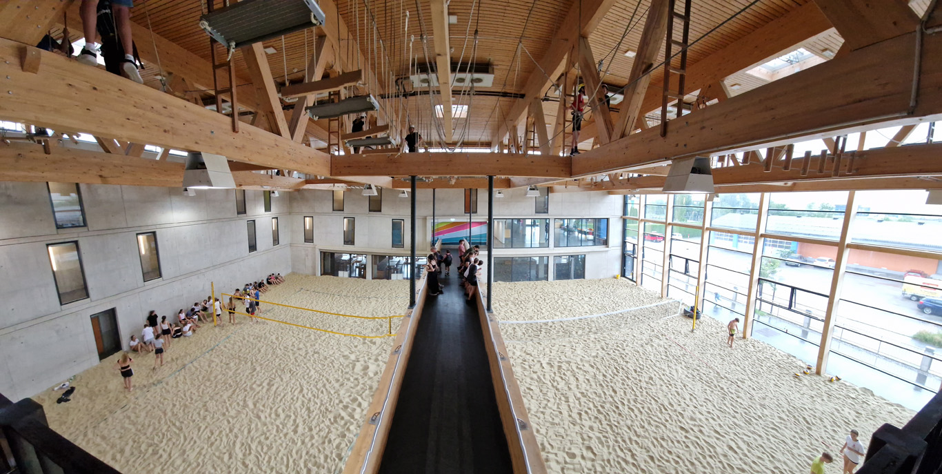 Am Montag, den 10.07. machten sich die 8. Klassen zusammen mit sechs Lehrkräften (Fr. Tietze, Fr. Kramer, Fr. Liedl, Hr. Viol, Hr. Ritzer und Hr. Kasberger) auf den Weg zur Sommersportwoche nach Zell am See. Nach 3,5 Stunden Fahrt erreichte man die Unterkunft am Fuße des Kitzsteinhorns. Der Jugendclub hielt, was die Bilder auf seiner Homepage versprechen: ein riesiger Outdoor-Bereich mit Pool, abenteuerlicher Wasserrutsche, Beachsoccer, Beachvolleyball, Tischtennis, Basketball usw. zusammen mit den Möglichkeiten indoor wie Boulder-Area, zwei Indoor-Beachvolleyballfeldern, zwei Sporthallen und sogar Kletterpark ließen die Herzen der Schülerinnen und Schüler höher schlagen.
