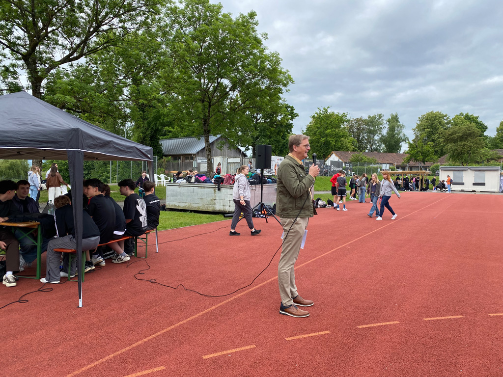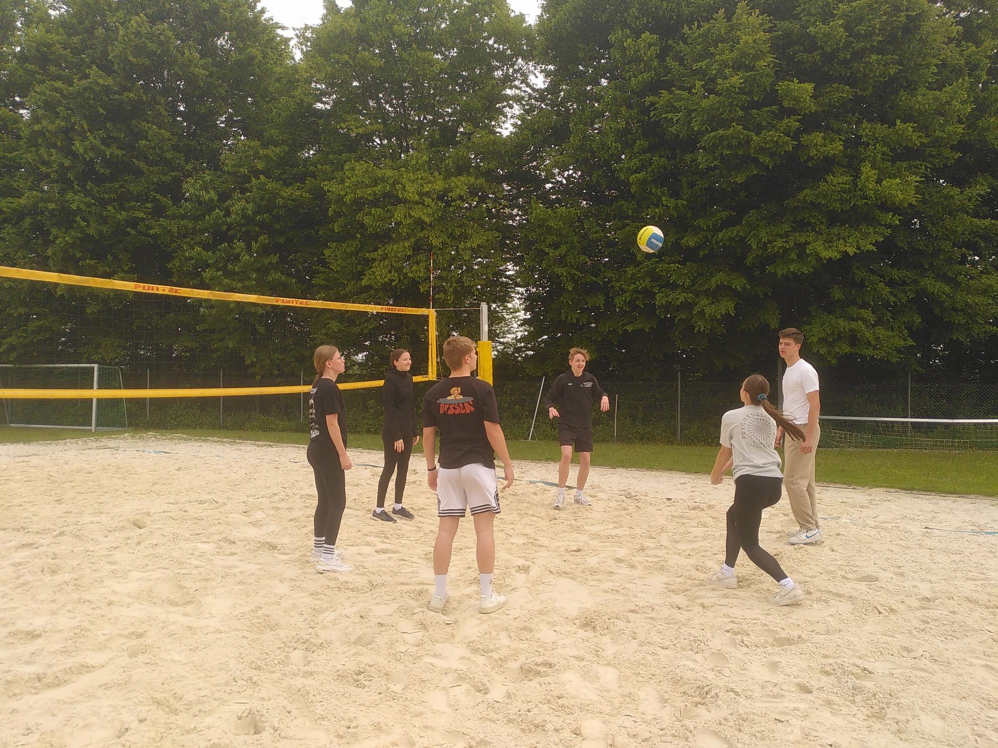 Für musikalische Stimmung sorgte das Technikteam, während das P-Seminar von Frau Liedl mit Snacks und Getränken für die Verpflegung zuständig war. In den verschiedenen Disziplinen Sprint, Weitsprung und Schlagballwurf bzw. Kugelsoßen stand neben dem Wettbewerb auch der Spaß im Vordergrund. Ein weiteres Highlight war das Beachvolleyball-Turnier der 10. Klassen, das für viel Spannung und gute Laune sorgte.