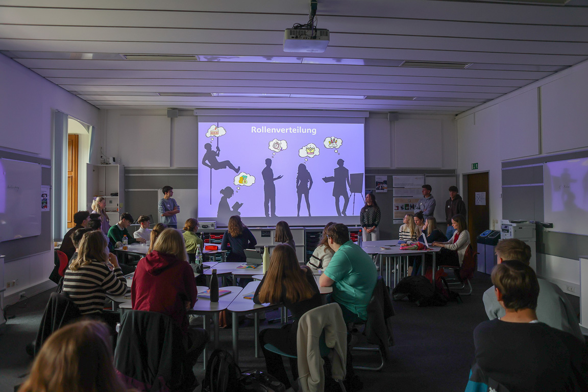 Bei der Auftaktveranstaltung am 24. April stellten die Schülerinnen und Schüler des Auersperg-Gymnasiums ihre Projekte den Studierenden vor. In einem offenen Austausch konnten die Studierenden, die diese Art des Lernens aus ihrer Schulzeit noch nicht kennen, Fragen zur Zielsetzung und zur konkreten Umsetzung stellen. Ihre Aufgabe wird es sein, die noch recht neue Lernform „FreiDay“ zu evaluieren und empirische Daten zu erheben, die es ermöglichen, den Lernerfolg sichtbar zu machen. Der Austausch war für beide Seiten sehr spannend und anregend, die Freudenhainer waren hinterher sichtbar stolz, ihre Vorträge in diesem Kreis gut gemeistert zu haben.
