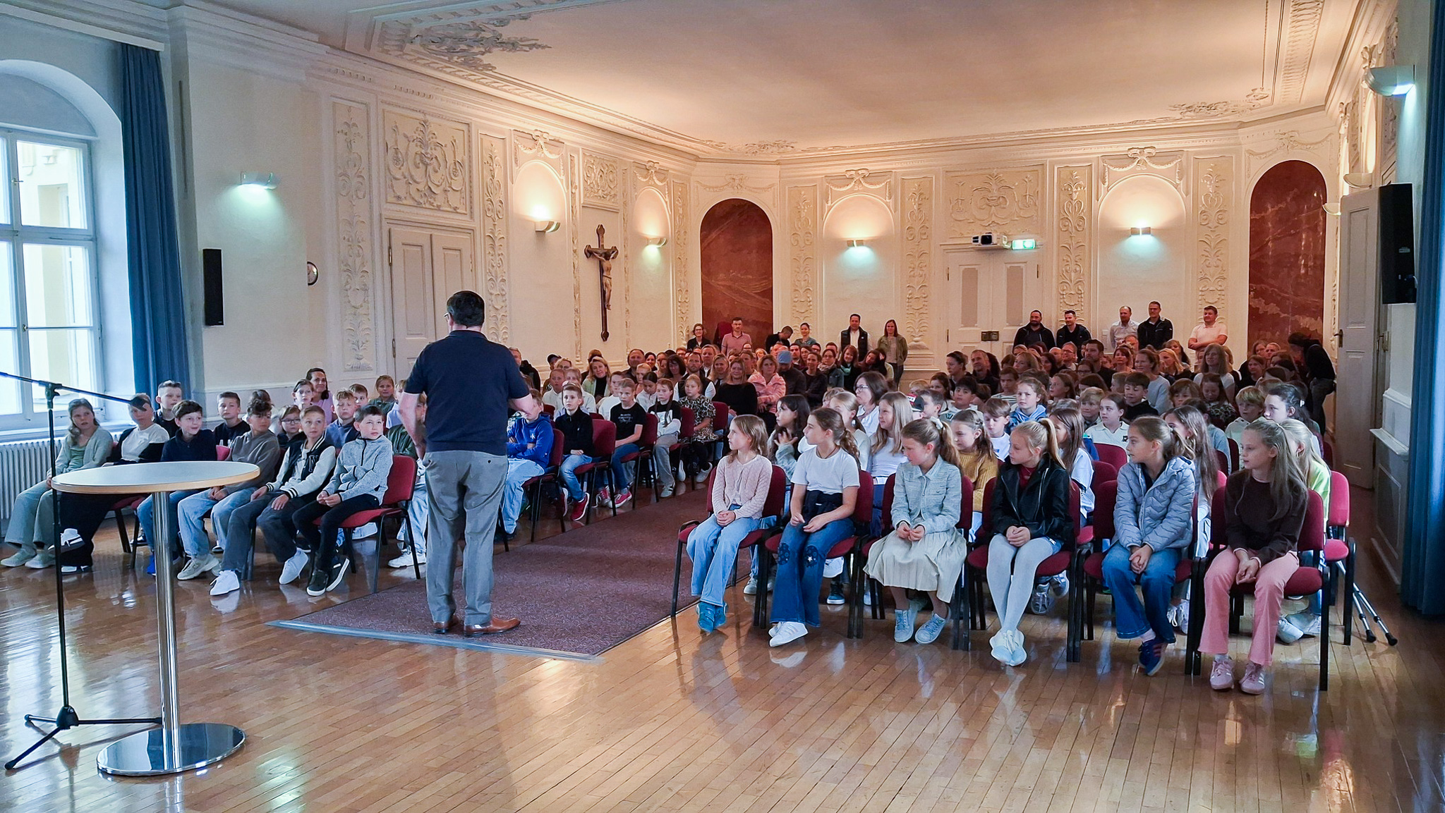 20250916 0806231Der erste Schultag am Auersperg-Gymnasium Freudenhain ist jedes Jahr ein besonderes Ereignis – sowohl für die neuen Fünftklässlerinnen und Fünftklässler als auch für ihre Familien. Voller Vorfreude und vielleicht auch etwas Aufregung haben die neuen Schülerinnen und Schüler am Dienstag ihren ersten Tag an unserer Schule erlebt. Nach einer herzlichen Begrüßung durch unseren Direktor Herrn Müller wurden die Mädchen und Jungen von ihren Tutorinnen und Tutoren zu den neuen Klassenräumen begleitet und von ihren Klassenleiterinnen Frau Kramer (5a), Frau Fast (5b) und Frau Kraft (5c) in Empfang genommen.