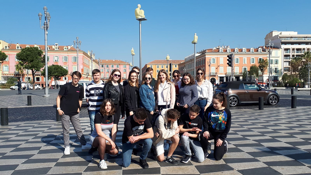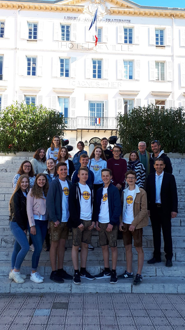 Das erste Highlight war für die Jungen und Mädchen bereits der Flug über die Alpen und der Anflug auf den Flughafen von Nizza, dessen Landebahn unmittelbar am Meer liegt. In Nizza wurden sie gut gelaunt und außerordentlich warmherzig von ihren französischen Austauschpartnern und deren Familien empfangen und hatten dann zehn Tage lang die Gelegenheit, Schul- und Familienalltag in Frankreich aus erster Hand mitzuerleben.