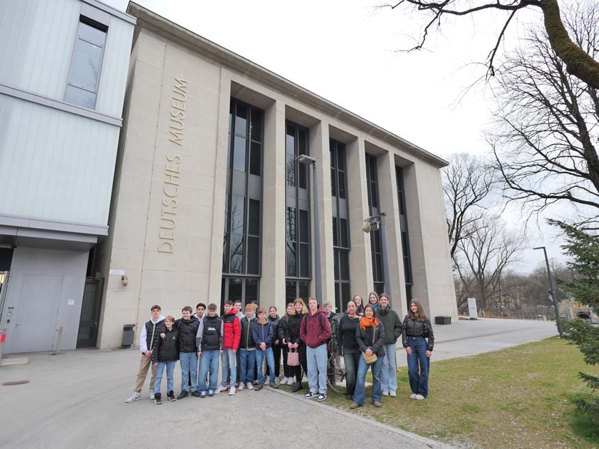 Am Montag, den 04.03.2024 brachen die Klassen 8b und 8c gemeinsam mit Frau Breitenfellner, Herrn Dobretsberger, Frau Penn und Herrn Viol mit dem Zug nach München auf. Nach einer kleinen Mittagspause bezogen wir unsere geräumigen Zimmer in unserem Hotel direkt neben dem Olympiapark. Während für die 8b schon der erste Workshop in der BMW-Welt auf dem Programm stand, besuchte die 8c das Deutsche Museum. Hier war für alle etwas Interessantes dabei, zum Beispiel Flugzeuge im Lauf der Zeit, Optik, Landwirtschaft und Ernährung. Nach dem Museumsbesuch spazierten wir zum Marienplatz, wo wir kurz Zeit hatten zu bummeln. Danach wartete im Hotel schon das Abendessen. Der geplante gemeinsame Spieleabend wurde leider durch eine allzu laute italienische Schülergruppe auf die einzelnen Zimmer verlegt.