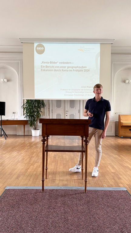 Jonas Wagener berichtet den Zehntklässlern von seiner Kenia-Exkursion