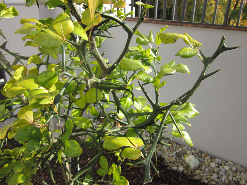 Was lag näher, als die Passauer Goldpomeranze zurück in den Schlossgarten von Freudenhain zu bringen? Mit Unterstützung der Stadtgärtnerei Passau wurden daher im Herbst zwei Passauer Goldpomeranzen vom P-Seminar angepflanzt. Sie befinden sich rechts und links hinter dem Eingangstor und sind somit für jeden, der die Schlossanlage betritt, sofort sichtbar. Zunächst wurden in schweißtreibender Arbeit tiefe Pflanzlöcher in das Erdreich gegraben, die dann mit Pflanzerde aufgefüllt wurden, um den Pomeranzen einen guten Start in Freudenhain zu bieten. Dann konnte man die beiden dornenbewehrten Pflanzen in ihren neuen Lebensraum einsetzen und die Wurzelstöcke noch sorgfältig mit Erdreich bedecken. Wir danken Herrn Hermann Scheuer (links auf Bild 4) von der Stadtgärtnerei und wünschen den Bäumchen einen guten Start. Laut Herrn Scheuer dürfen wir uns im Frühling auf die erste Pomeranzenblüte freuen.