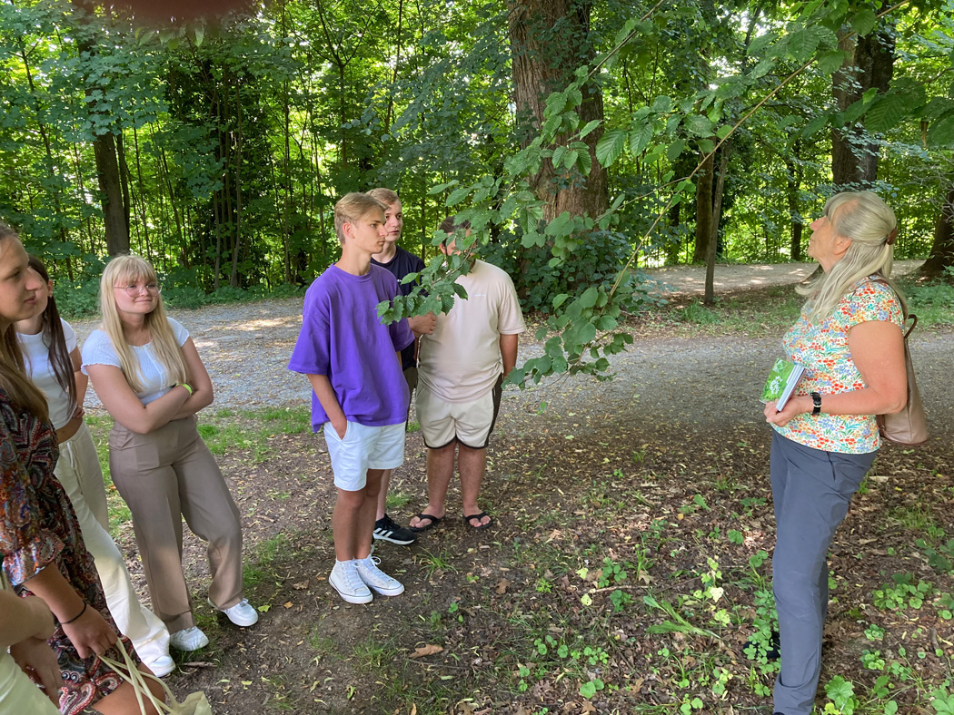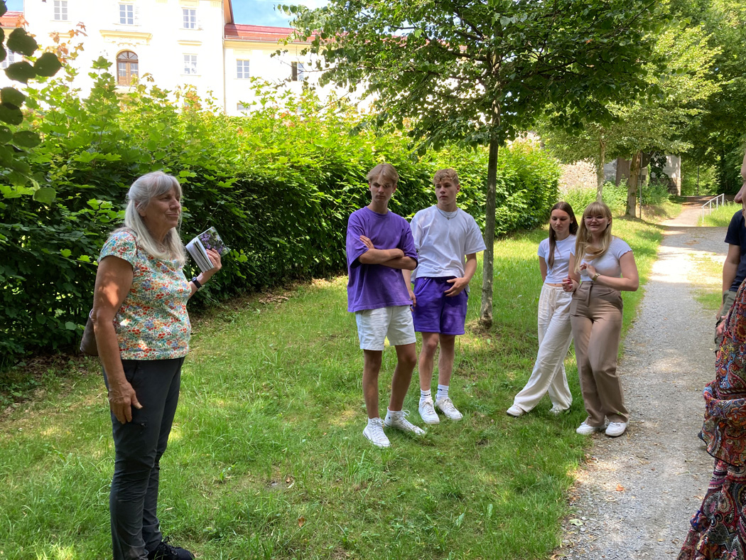 Kaum jemand kennt die Pflanzen, die unscheinbar am Wegrand stehen. Die Kräuterpädagogin Margarete Vogl aus Tiefenbach erläuterte den Schülerinnen und Schüler des P-Seminars Heilkräuter welche Vielfalt an essbaren Pflanzen auf dem Schulgelände von Freudenhain zu finden ist. Darüber hinaus gab sie wertvolle Hinweise zu deren Verwendungsmöglichkeiten und gesundheitsfördernden Wirkung.