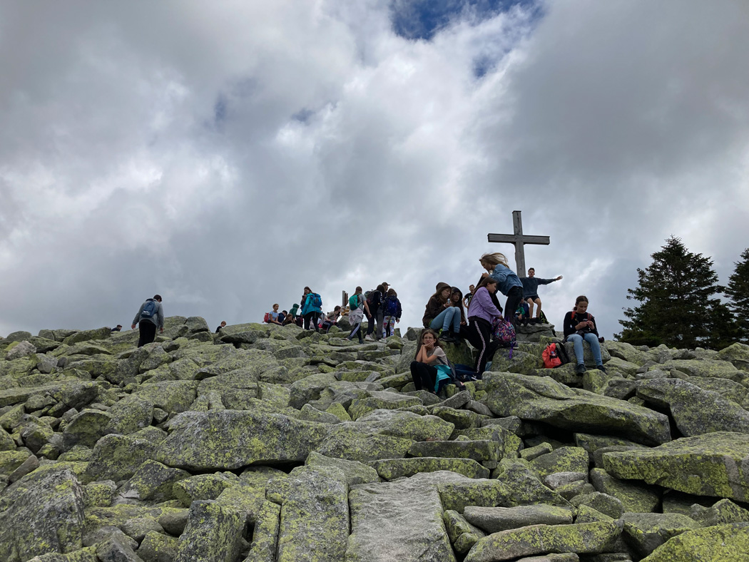 Nachdem die Fahrt zum Jugendwaldheim coronabedingt nicht stattfinden konnte, wurde am 11. Juli als kleiner Ersatz eine eintägige Fahrt mit geführter Wanderung auf den Lusen angeboten. Bei leicht regnerischem Wetter erreichten die Schülerinnen und Schüler und ihre begleitenden Lehrkräfte den Parkplatz Waldhäuser. In sechs Gruppen, die jeweils von einem Waldführer vom Nationalpark Bayerischer Wald begleitet wurden, machten sie sich auf den Weg. Bei kleinen Zwischenhalten erläuterten die Waldführer die Besonderheiten des Nationalparks und der natürlichen Waldverjüngung nach Windwurf und anschließendem Borkenkäferbefall Mitte der 80er Jahre. Kurz vor dem Gipfel spitzte auch die Sonne heraus, sodass eine Mittagspause im Freien beim Lusenschutzhaus möglich war. Der ereignisreiche Tag wurde mit einer Besichtigung des Baumwipfelpfades abgeschlossen.