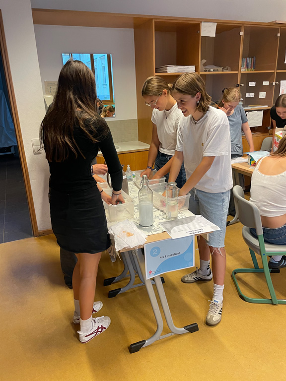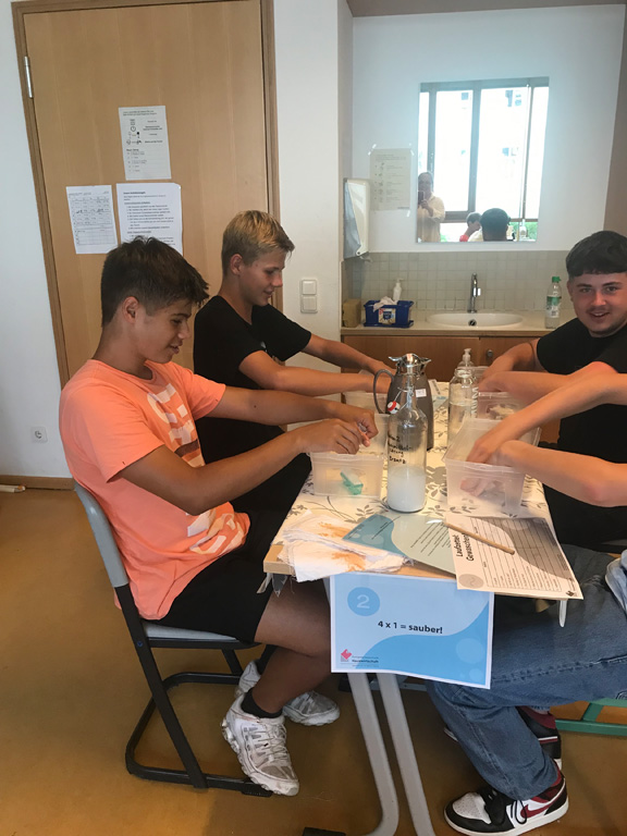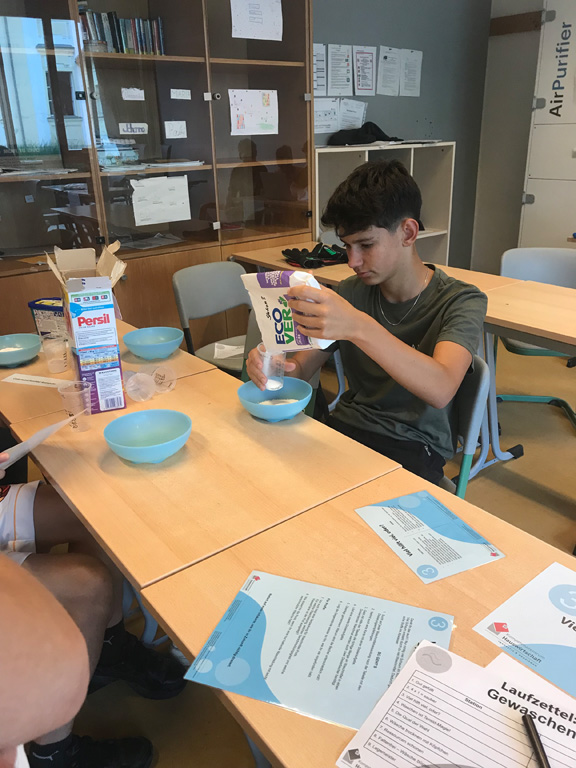 Die Projektwoche startete mit dem Lernzirkel „Fit für den eigenen Haushalt – Wäschepflege“, den die Hauswirtschafterin Astrid Angerer betreute. In verschiedenen Stationen, wie beispielsweise „faltenfrei Bügeln“, „Entfernen eines Flecks“ oder „das richtige Dosieren des Waschmittels“, konnten die Schülerinnen und Schüler sich eigenständig mit Inhalten rund um das Thema Wäschepflege auseinandersetzen. Zudem wurden wichtige Take-Away-Messages in einer Abschlussrunde gemeinsam mit der Hauswirtschaftlerin besprochen.