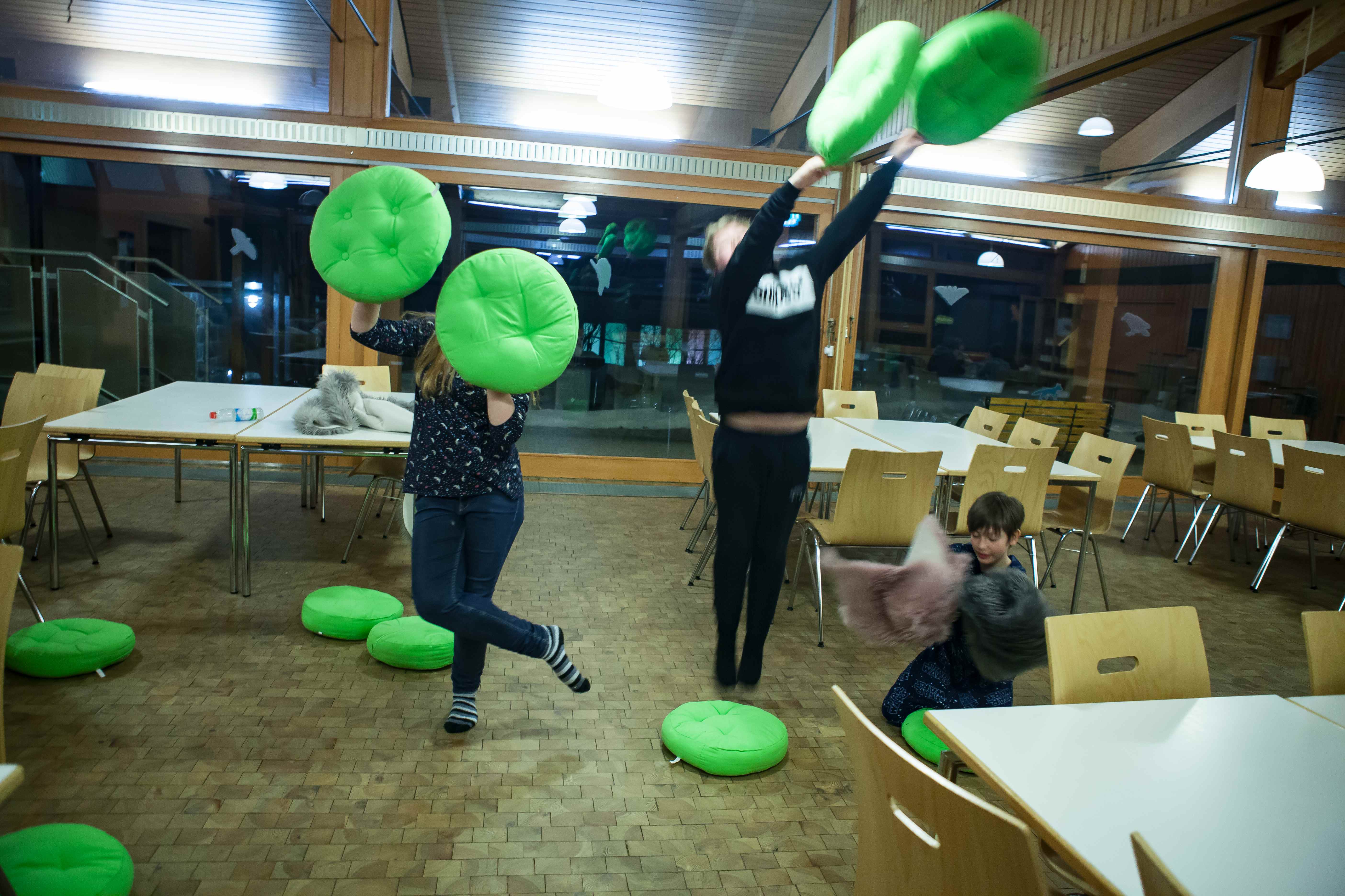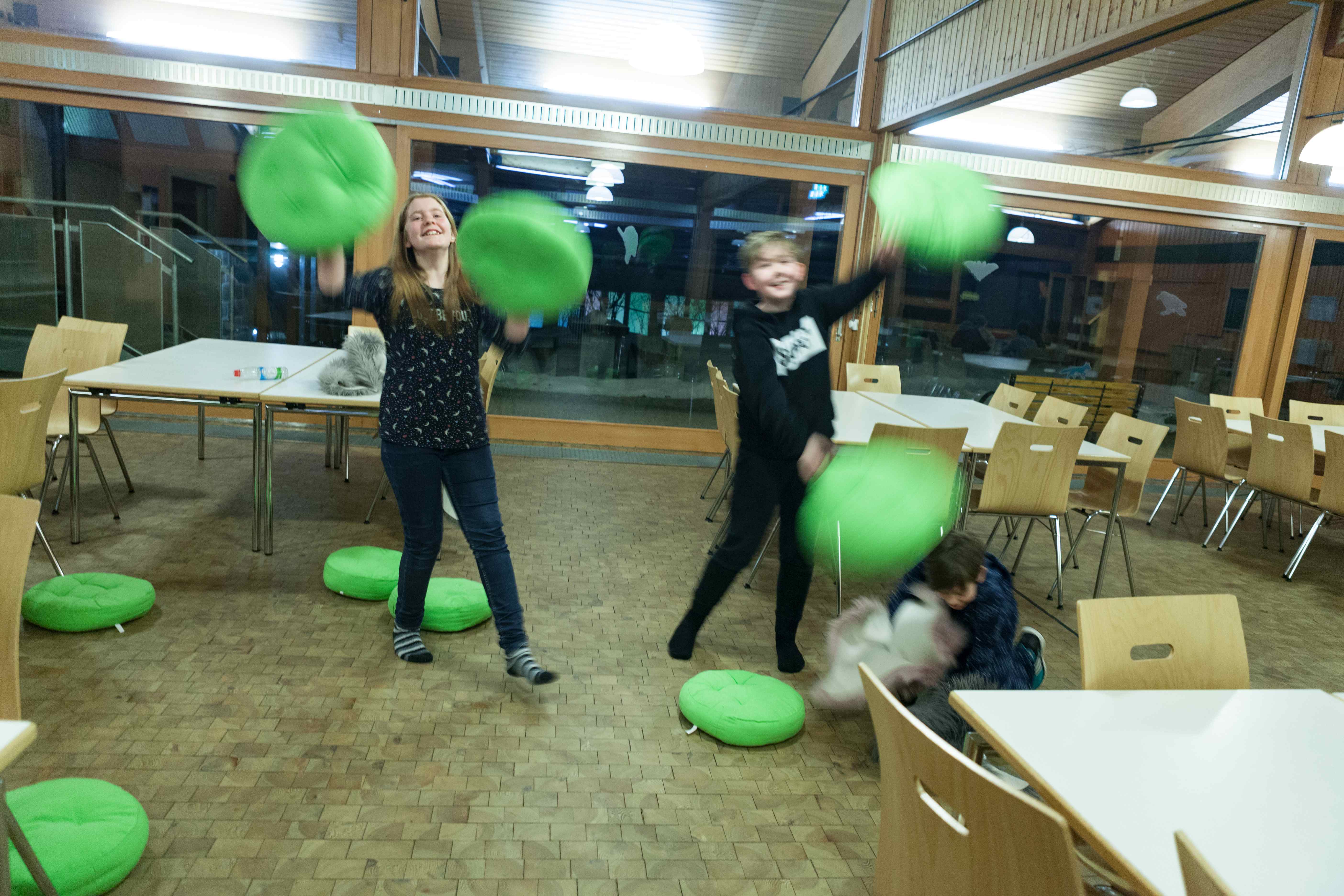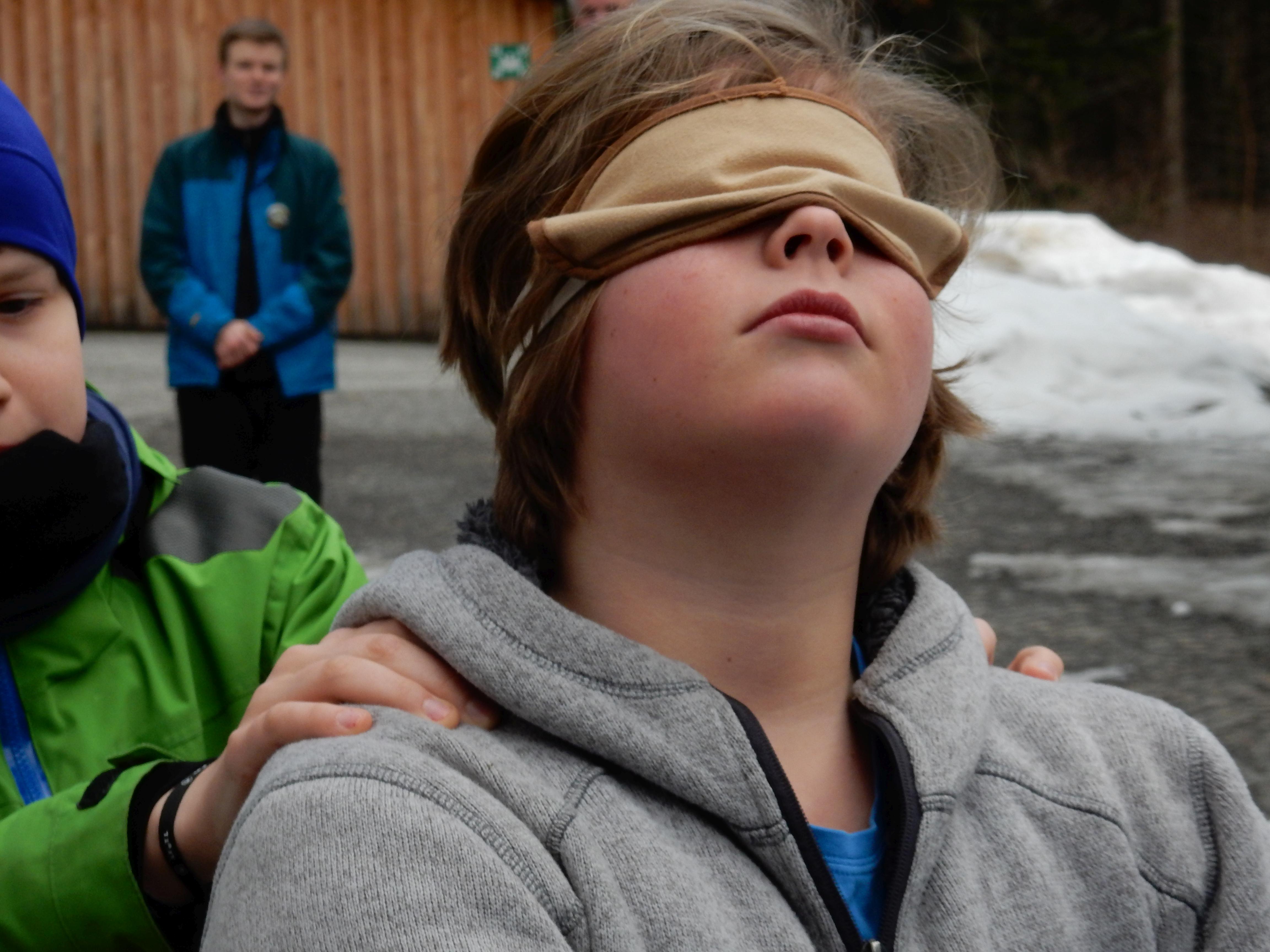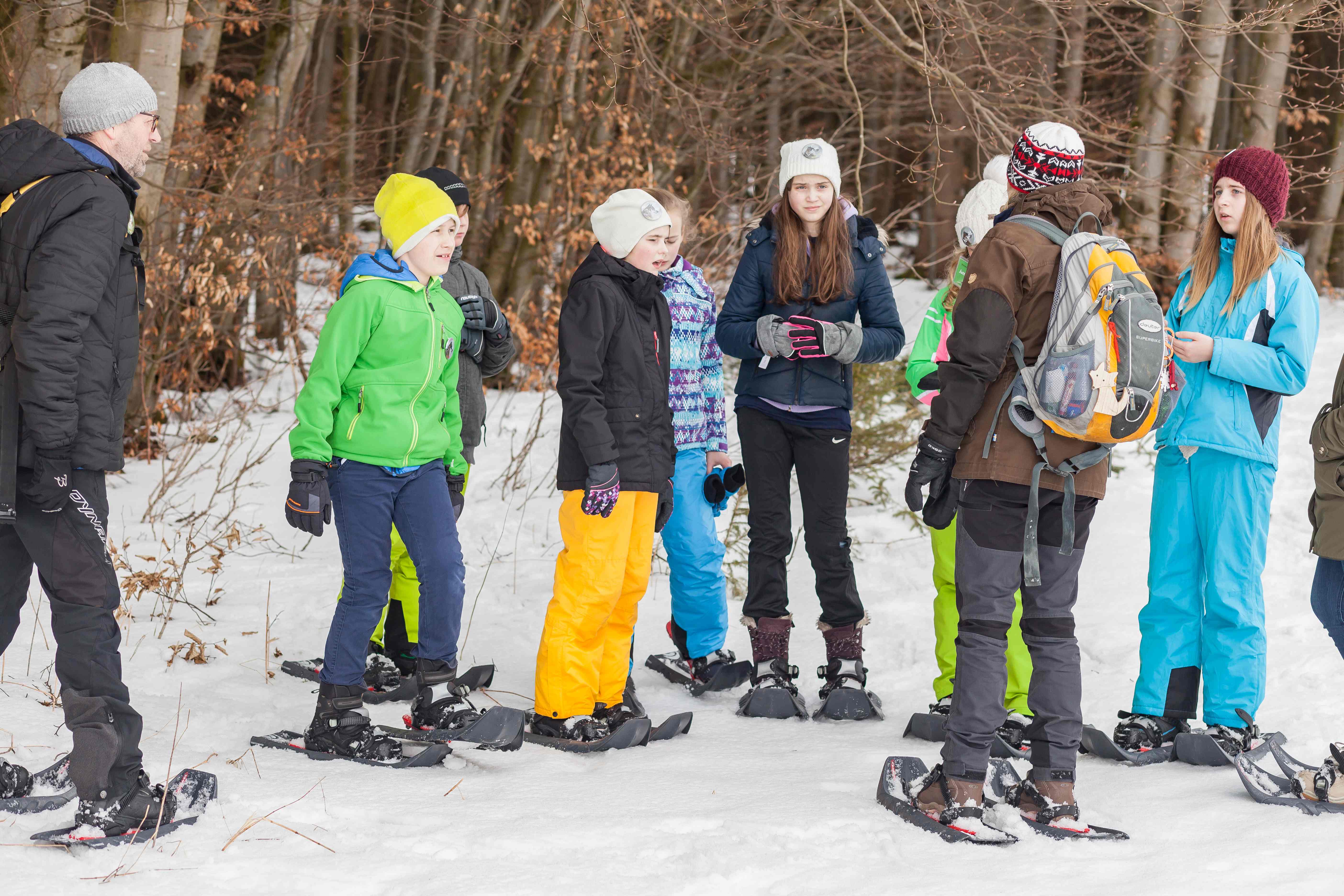 Heute war unser Tag in zwei Abschnitte geteilt. Am Vormittag erlebten wir spannende Spiele im Wald, zum Beispiel ein Versteckspiel, wobei wir unsere Sinne testeten, während der andere Teil der Klasse sich mit Schneeschuhwandern beschäftigte. Am besten war das Spiel mit dem reißenden Fluss. Man musste mit grünen Filzflecken über einen reißenden Fluss kommen. Dabei durften wir die Filzflecken nicht loslassen, sonst verschwindet der Filzflecken im reißenden Fluss.