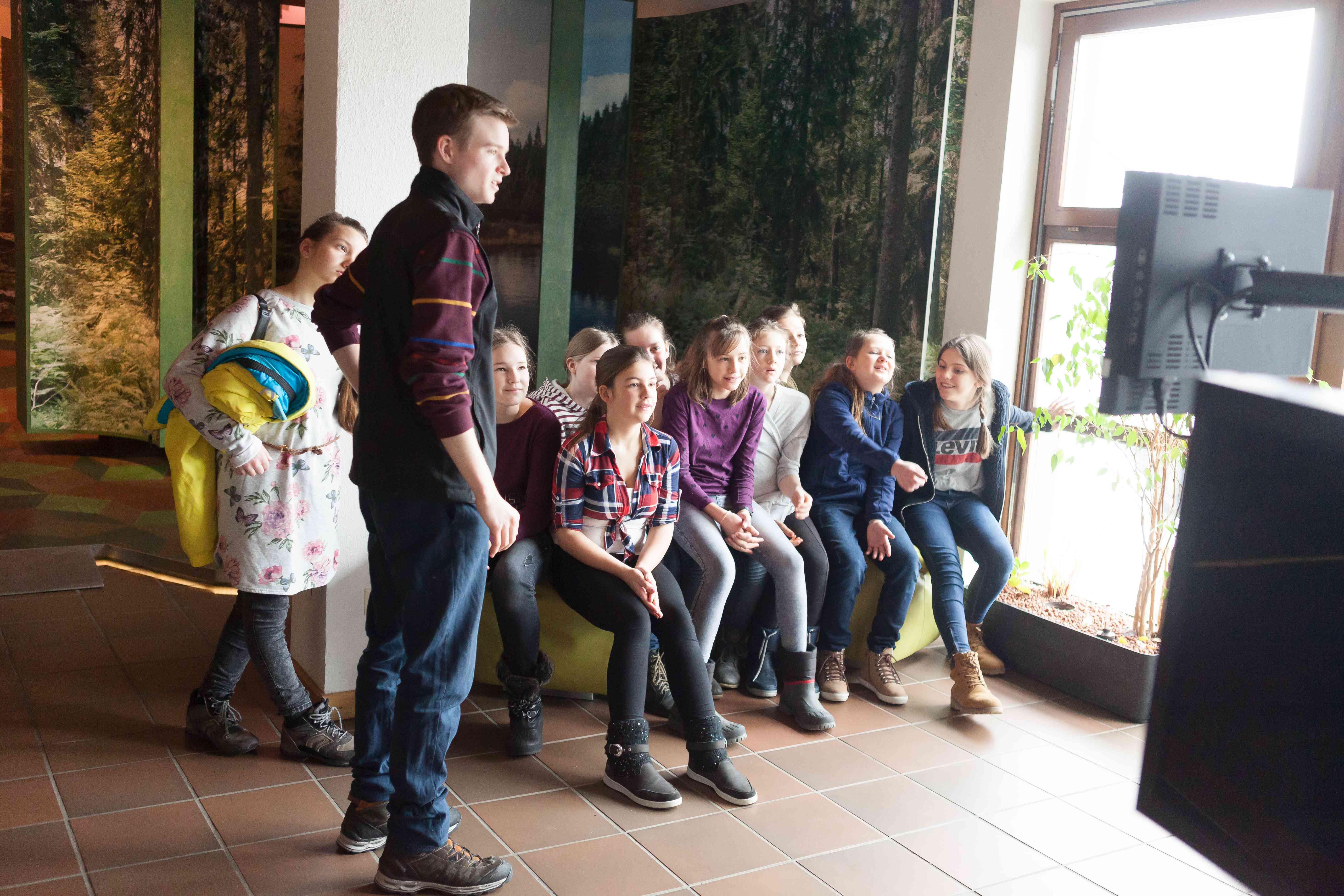 Heute besichtigten wir viele Tiere im Nationalpark und auch den Baumwipfelpfad. Die Luchse und die Wölfe hat man heute ziemlich gut gesehen. Die Luchse haben sofort gerochen, dass jemand aus unserer Gruppe eine Wurstsemmel gegessen hat. Da ist dann ein Luchs hergerannt und war ca. 2 Meter vor uns. Bei den Wölfen sind wir auf Wanderer gestoßen, die Wolfshunde dabei hatten und auch noch andere Hunde. Die Wolfshunde haben angefangen zu heulen und dann haben die Wölfe mitgemacht. Das war richtig laut! Cool war auch der Baumwipfelpfad. Wir waren so hoch, dass man die Bäume neben dem Pfade schubsen konnte, sodass die sich hin und her bewegten. Außerdem gab es einen Parcour, über den man balancieren konnte, wobei manche ziemlich Höhenangst hatten. Dann war da noch ein 3mm dickes Stahlnetz, auf das man sich in 25 Meter Höhe legen konnte. Richtig schlimm war auch ein Holzstamm, der sich gedreht hat, während man darauf balancierte. Als wir oben auf dem Ei waren, hatten wir einen Mega-Ausblick. Die Erzählungen von unseren Parkführern waren auch sehr interessant, wir haben viele Fragen gestellt, die alle beantwortet wurden.