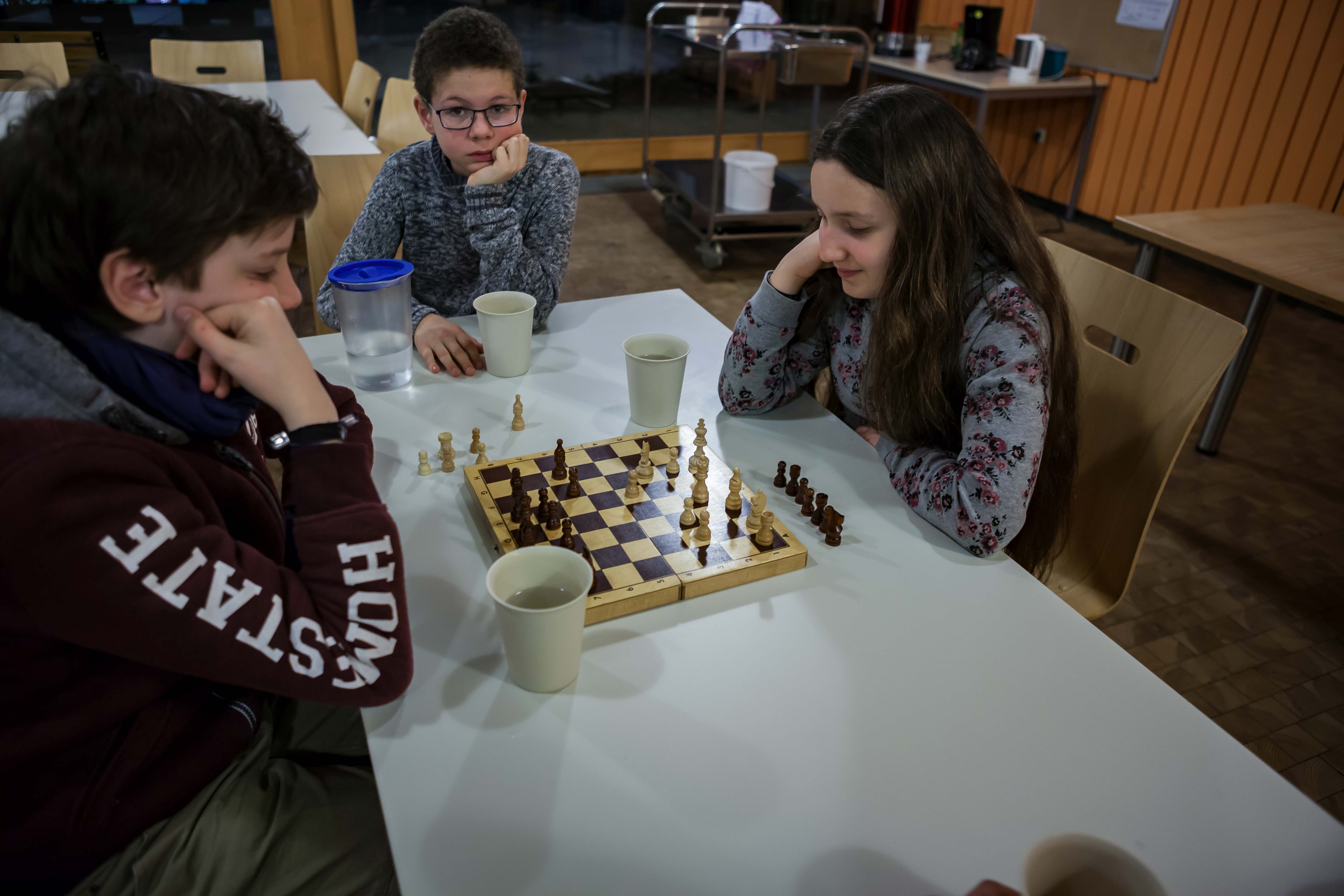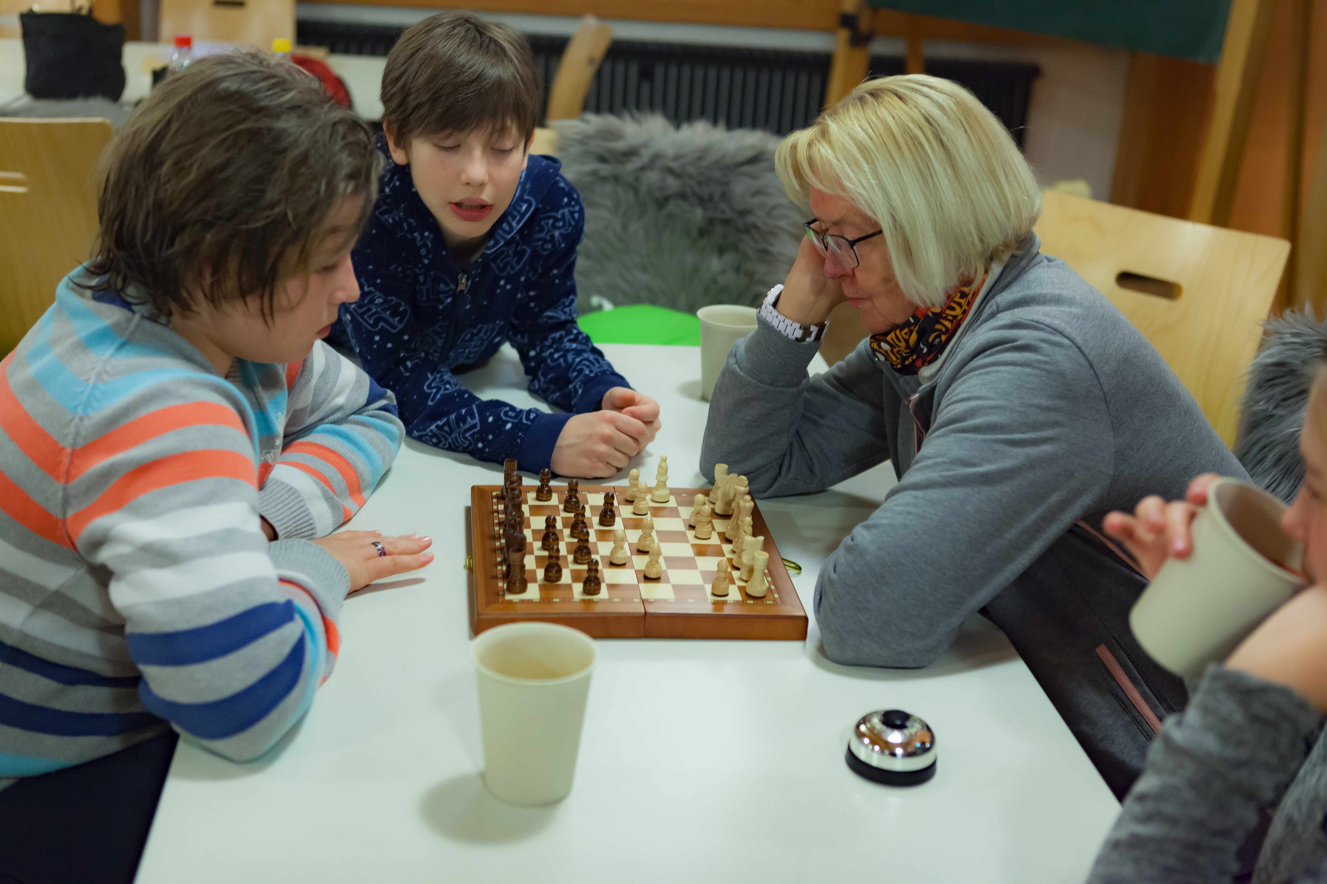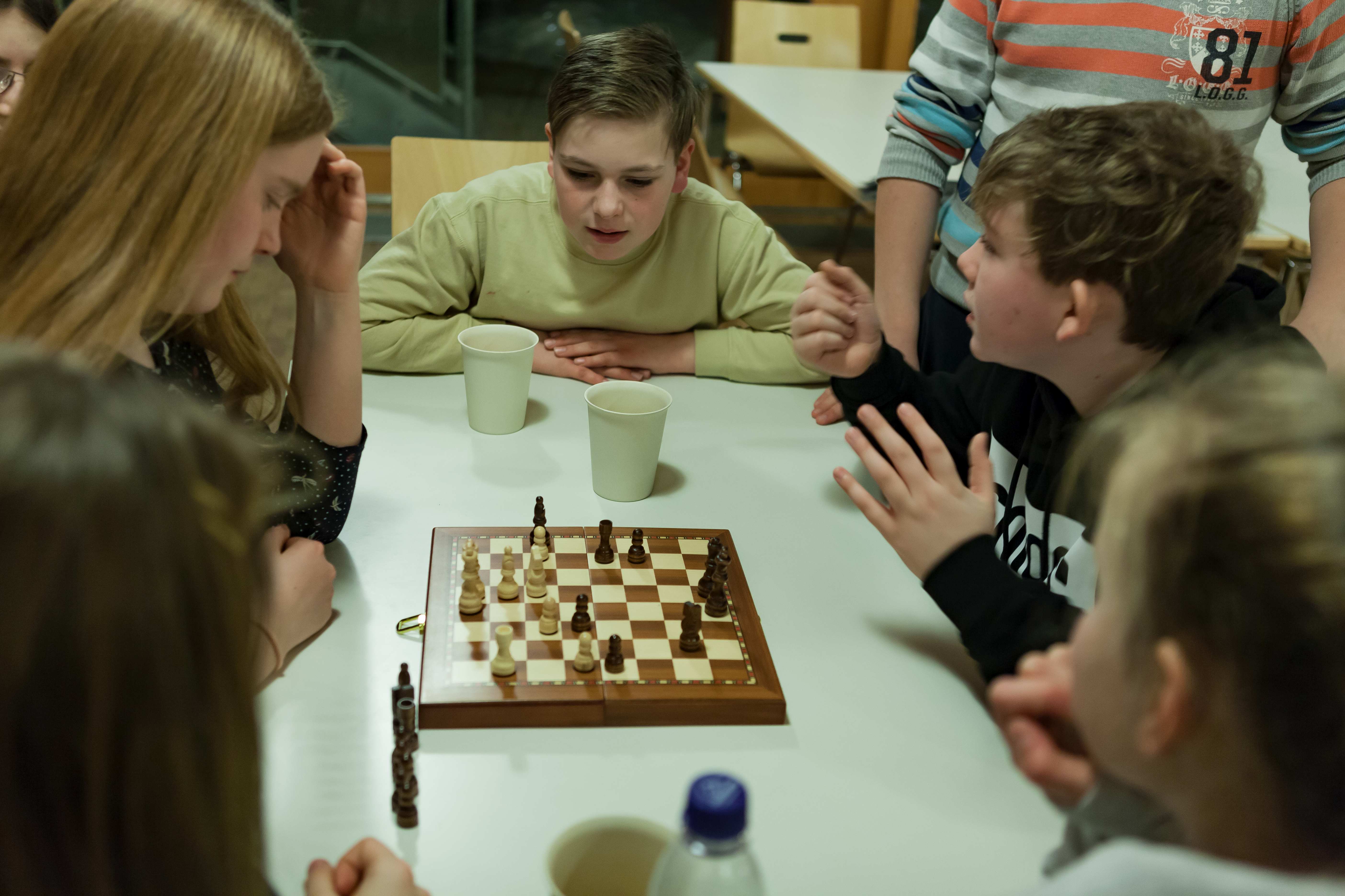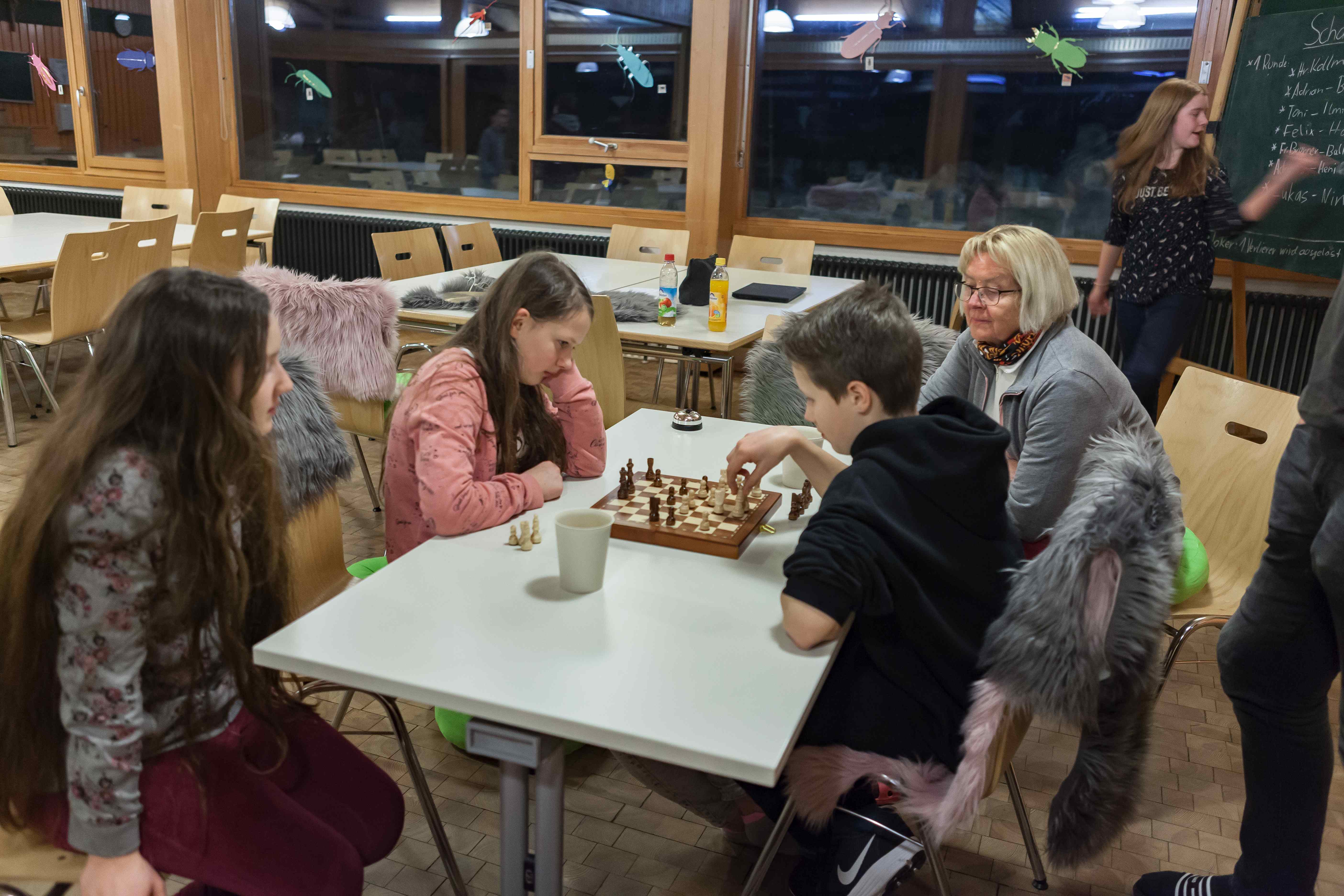 Am Abend ist die zweite Runde des Schachturniers, Herr Kollmann spielt gegen Henrike. Wer gewinnt? Henrike hat gewonnen!