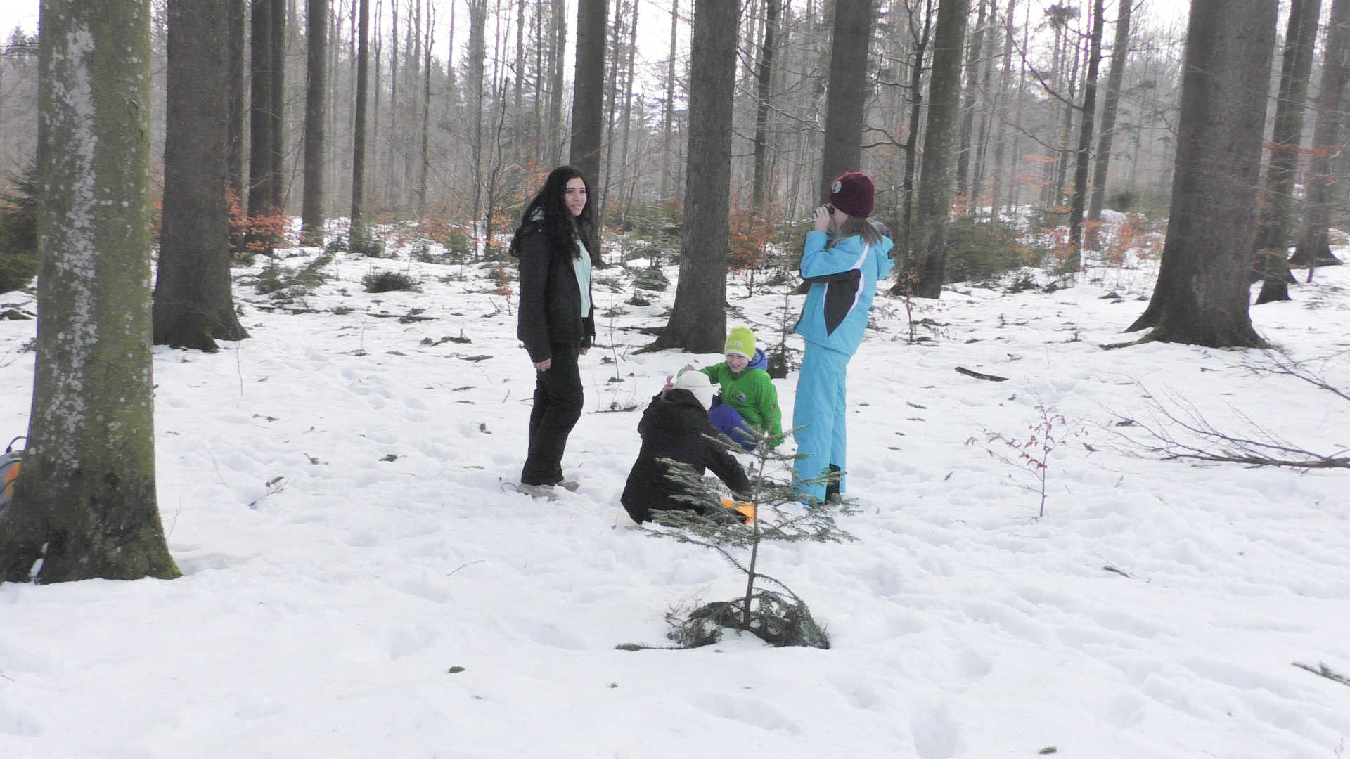 Schneeschuhwandern habe ich noch nie gemacht, deshalb fand ich es sehr schön. Sebastian hat uns bei der Kapelle eine Geschichte über die Kapelle erzählt. Die heißt Ameiskapelle. Ein Bauer ist mit seinem Sohn in den Wald gegangen um Holz zu machen. Am Mittag haben sie sich hingelegt, um sich auszuruhen, da sind beide eingeschlafen und haben das gleiche geträumt. Der Vater hat geträumt, dass im Ameisenhaufen neben ihnen ein Marienbild liegt. Sie haben nachgeschaut und haben das Marienbild gefunden und nach Hause genommen.