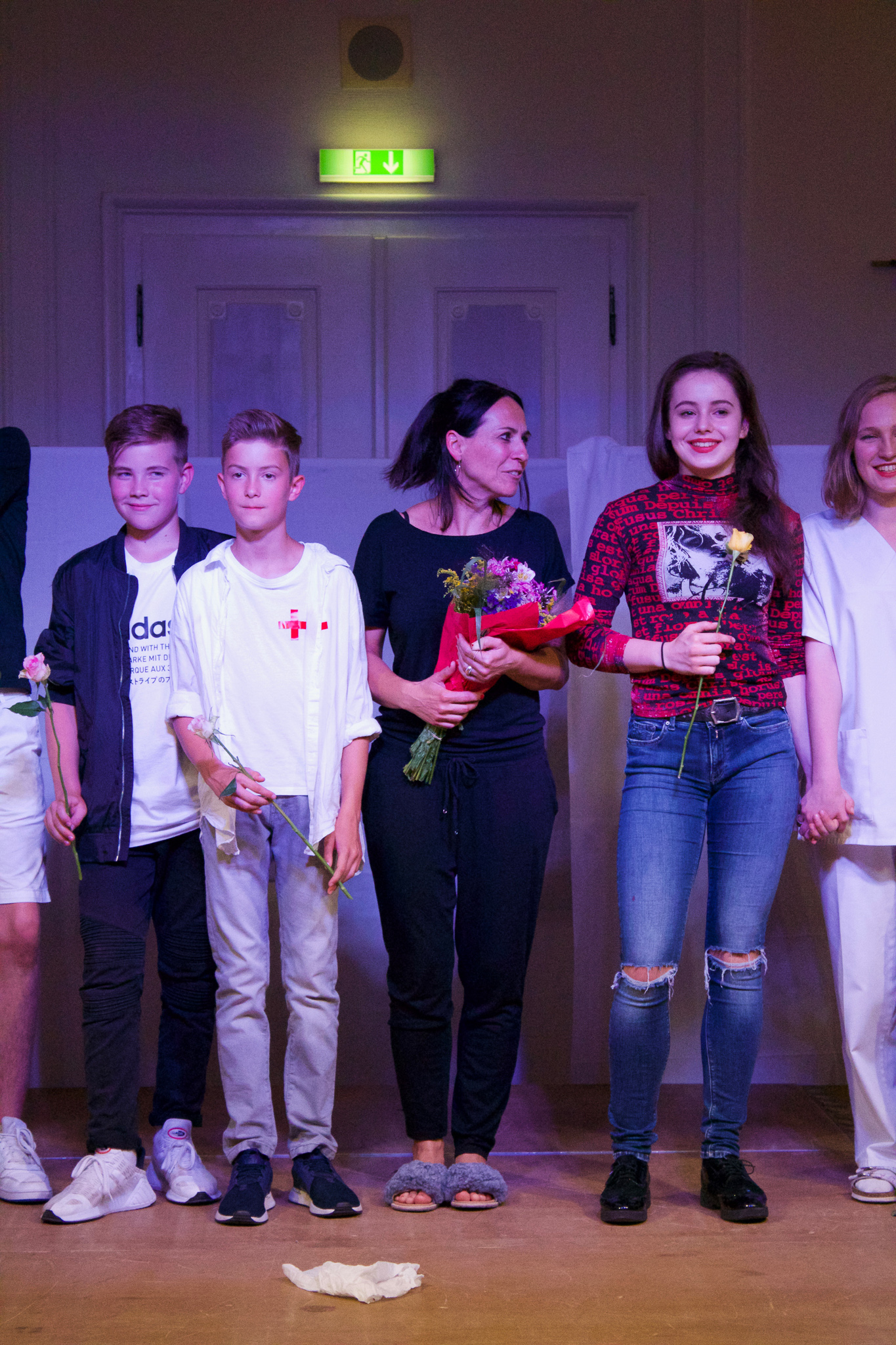 Mit langem, tosenden Applaus bedachte das Publikum die jungen Schauspieler. Schulleiter Christian Zitzl überreichte Regisseurin Ursel Kraft als Haupverantwortliche, "die alle Hände und Herzen voll zu tun hattte", Blumen und einen guten Tropfen. Auch für die jungen Theaterleute gab es Rosen.