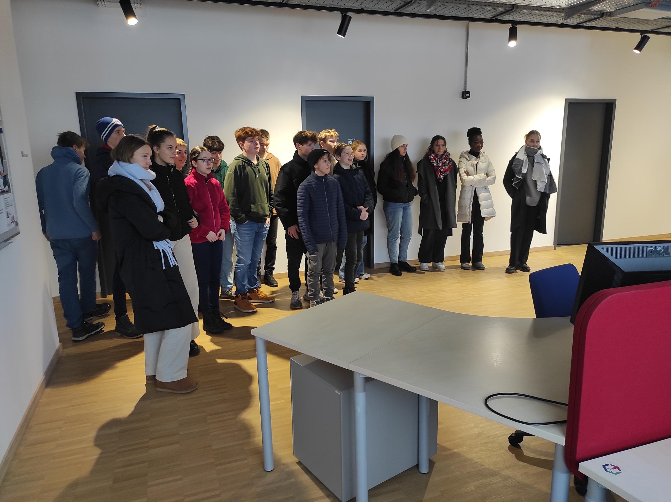Beim anschließenden Rundgang besichtigten die Schüler:innen mitunter die große Gemeinschaftsküche, die Telefonzelle, Konferenzräume, offene und geschlossene Büros und entdeckten freilich auch einen Kicker und die Tischtennisplatte. Außerdem berichtete Fr. Schneider, die uns durch das Gebäude führte, von diversen Geschäftsideen, die hier erfolgreich umgesetzt werden.