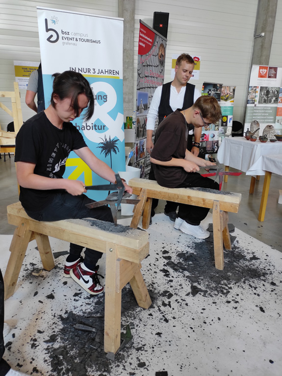 Am 15.06.2023 besuchte die 10.Jahrgagsstufe die deutsch-tschechische Handwerksmesse in Budweis. Das Ziel der Veranstaltung war, den Jugendlichen einige handwerkliche Berufe näher zu bringen und bei manchen vielleicht ein Interesse zu wecken, das ihre Berufswahl beeinflussen könnte. Auf dieser Messe hatten die Schüler:innen die Möglichkeit, etwas über verschiedene Handwerksberufe zu lernen und sie mit professioneller Hilfe sogar auszuprobieren. So bekamen die Jugendlichen zum Beispiel erklärt, wie man eine Glasblume anfertigt oder ein Brot backt. Für alle ein spannendes Erlebnis, selbst diejenigen, die eigentlich an gar keinem handwerklichen Beruf interessiert sind. Neben zahlreichen Handwerksberufen, die vorgestellt wurden, gab es nämlich auch viele Wunderwerke der Technik zu entdecken, von 3D-Druckern über Virtual Reality bis hin zu Programmen, mit denen sich Roboter steuern lassen.