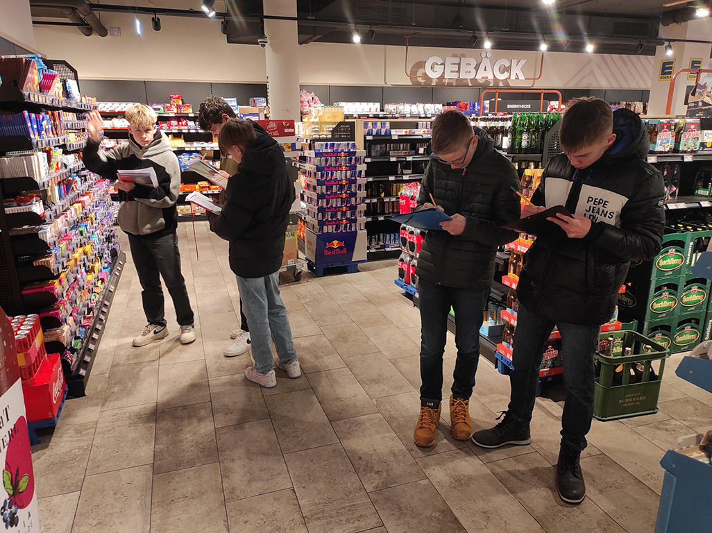 Am 20.12.2023 gingen die Klassen 8b und 8c mit den Lehrkräften Frau Breitenfellner und Herr Dobretsberger im Rahmen des Faches Wirtschaft und Recht zum Edeka Schwaiberger im Nibelungencenter. Dort wollten wir nicht einkaufen, sondern den Edeka „erforschen“. Wir hatten verschiedene interessante, aber auch anspruchsvolle Aufgaben, die sich alle aus dem Unterrichtsstoff ergaben. Zum Beispiel: Fairtrade Produkte finden und mit nicht Fairtrade Produkten vergleichen, die Obst- und Gemüseabteilung genauer unter die Lupe nehmen oder Kunden und Mitarbeiter befragen. Nach der Erfüllung unserer Aufgaben hatten wir eine kurze Pause, in der wir was beim Edeka kauften oder Zeit zum Frühstücken in der Bäckerei hatten. Nach der Pause traf der Filialleiter Herr Scheil zu uns, dem wir unsere unterschiedlichen Fragen stellen konnten, die wir zuvor im Unterricht vorbereitet hatten. Diese beantwortete er stets freundlich. Nach dem gelungenen Besuch kehrten wir zur Schule zurück, wo der Unterricht weiter ging. Für den Tag der offenen Tür werden wir Plakate gestalten, auf denen wir unsere „Forschungsergebnisse“ zu Verkaufstricks im Supermarkt präsentieren.