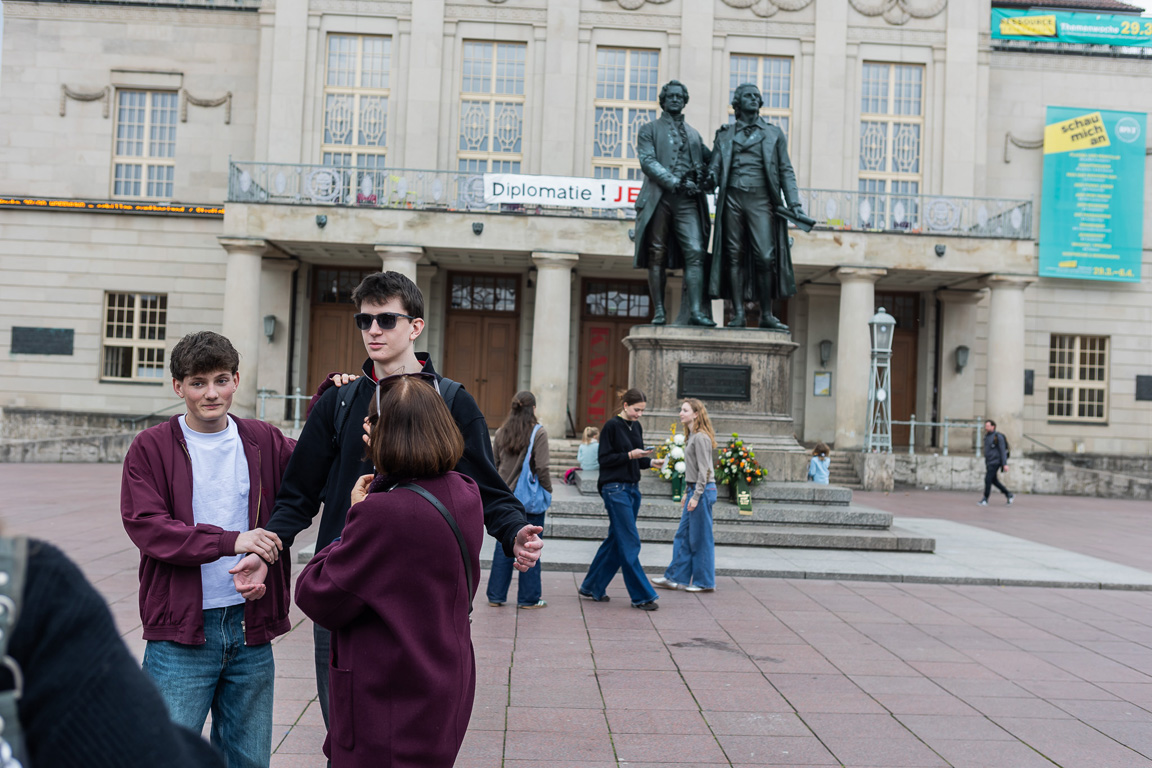 In Weimar bot das Goethehaus den Schülerinnen und Schülern die Möglichkeit, in die "Privatsphäre" des berühmten Schriftstellers einzutauchen. Die lebendige Führung durch die Ausstellung hinterließ bei den Teilnehmern bleibenden Eindruck. Unvorstellbar, womit sich dieser Mensch an der Wende zum 19. Jahrhundert alles beschäftigte. Auf dem Stadtrundgang stand dann Anna Amalia, eine Vertreterin der Aufklärung und Grande Dames in Weimar im Zentrum der Aufmerksamkeit und die Gruppe erfuhr auch, was das Bauhaus mit Demokratie zu tun hat.