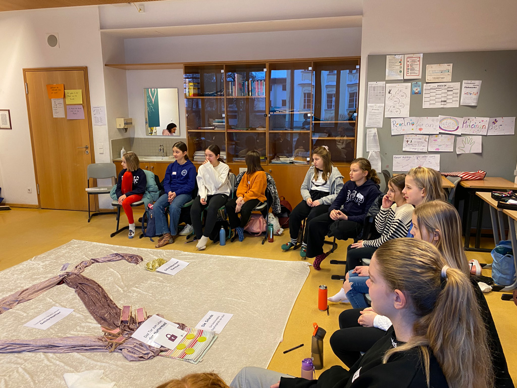 MitarbeiterInnen des Referats Ehe und Familie der Diözese arbeiteten mit den sechsten Klassen nach Mädchen und Buben getrennt zum Thema „Mit Sexualität verantwortlich umgehen“. Passend zur Passauer Großdemonstration gegen rechts, die für das bevorstehende Wochenende geplant war, sensibilisierten die SchülerInnen des P-Seminars Rassismus von Stephanie Holly die achten Klassen für offenen und versteckten Rassismus in der heutigen Gesellschaft. Die neunte Jahrgangsstufe beschäftigte sich mit Kinderrechten, konkretisiert durch Mitarbeiter des Vereins SOS-Kinderdorf, die die Arbeit in ihren Kinderdörfern weltweit vorstellten. Auch Nikolaus Saller von der „AG KZ-Transport 1945“ war wieder eingeladen, da der Maria-Ward-Tag fast mit dem Gedenktag der Opfer des Nationalsozialismus zusammenfiel. Er zeigte den Doku-Film über die Todeszüge 1945, die die Konzentrationslager evakuierten. Ein Vortrag für alle 10. Klassen und eine Diskussion schlossen sich an. Körper und Geist durften die 12. Klassen trainieren bei Yoga-Kursen in den Turnhallen und Lern-Coaching als Vorbereitung zum Abitur.