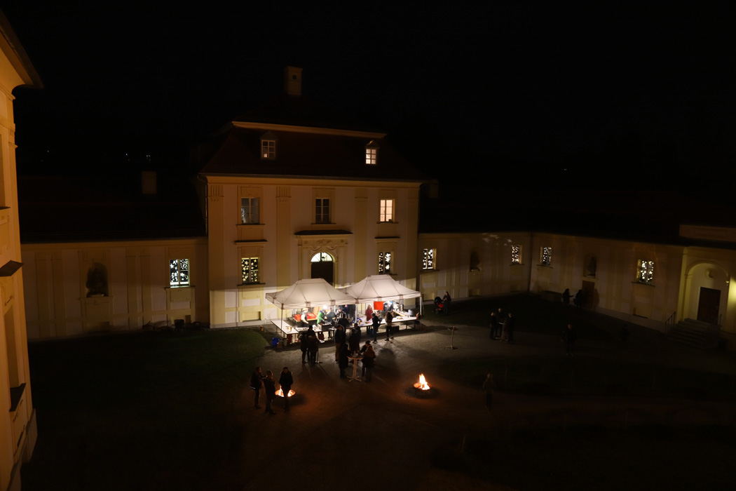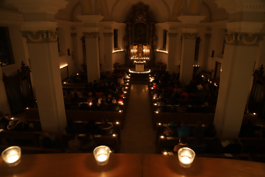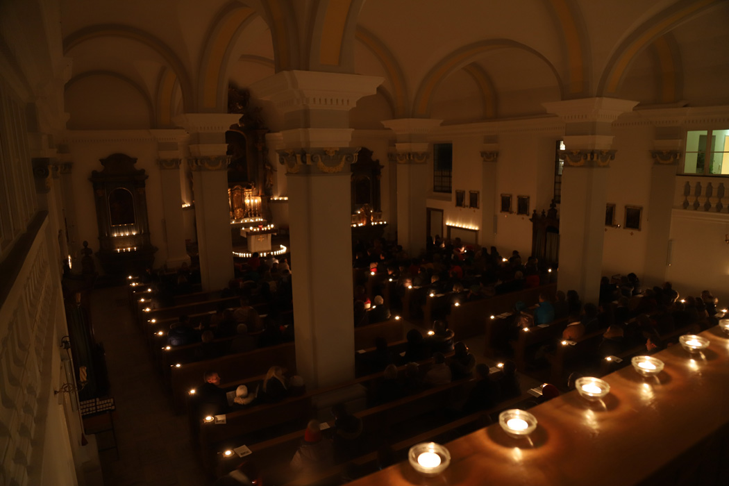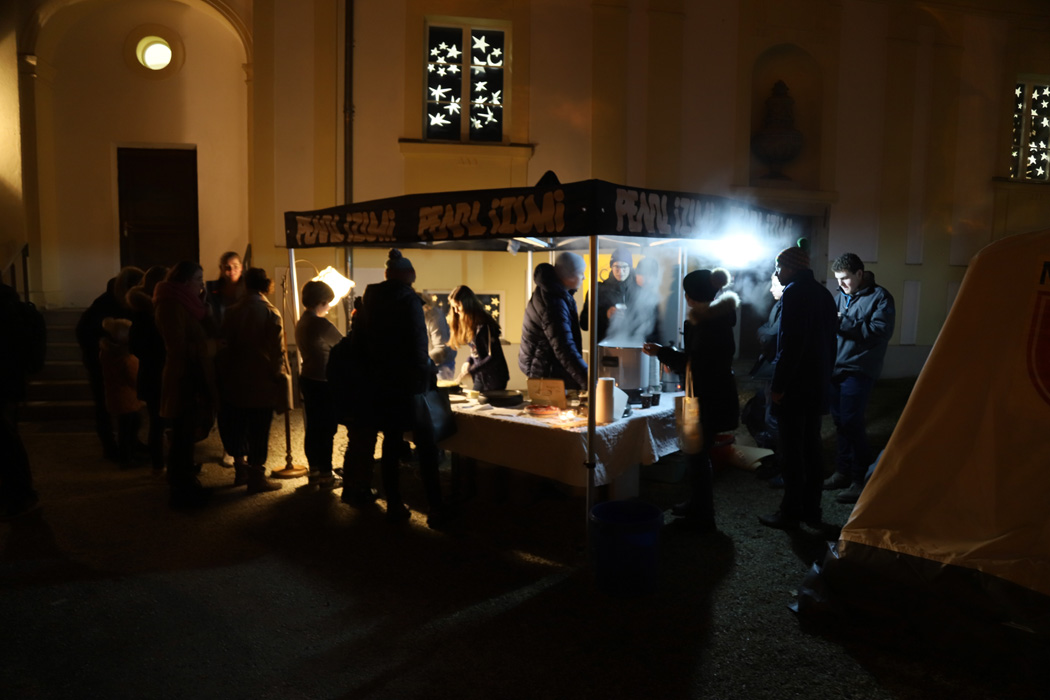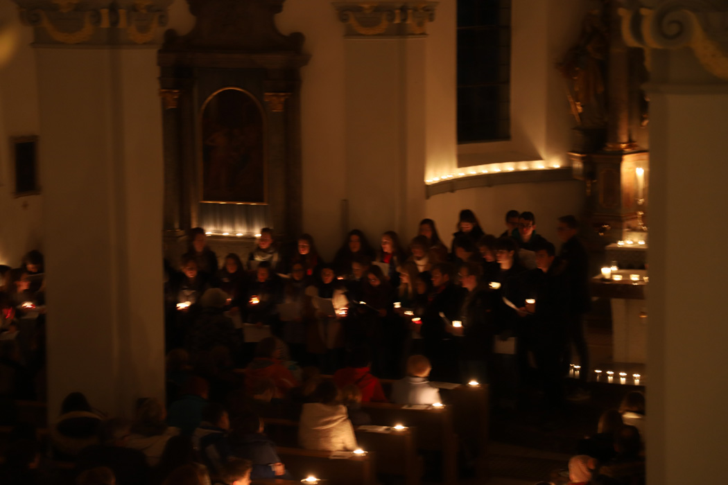 Außerdem konnte man um 18:00 oder um 20:15 Uhr einen weihnachtlichen Gottesdienst in der Schlosskapelle besuchen. Dabei wurden besinnliche Texte gelesen, umrahmt von englischen Weihnachtsliedern der Carol Singers unter der Leitung von Theresia Kollmann.