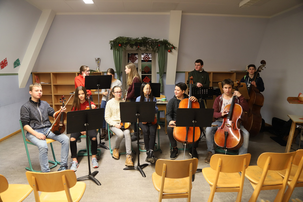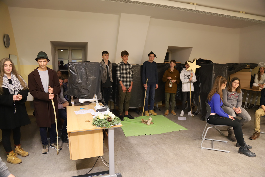 Die 5. und 6. Klassen boten auf einem Basar im Festsaal viel Selbstgebackenes und -gebasteltes an. Besondere Freude bereiteten den Eltern die Krippenspiele der Mittelstufenklassen. Jede der 7., 8. und 9. Klassen hatte in Eigenregie ein szenisches weihnachtliches Spiel einstudiert, das im eigenen Klassenzimmer aufgeführt wurde.