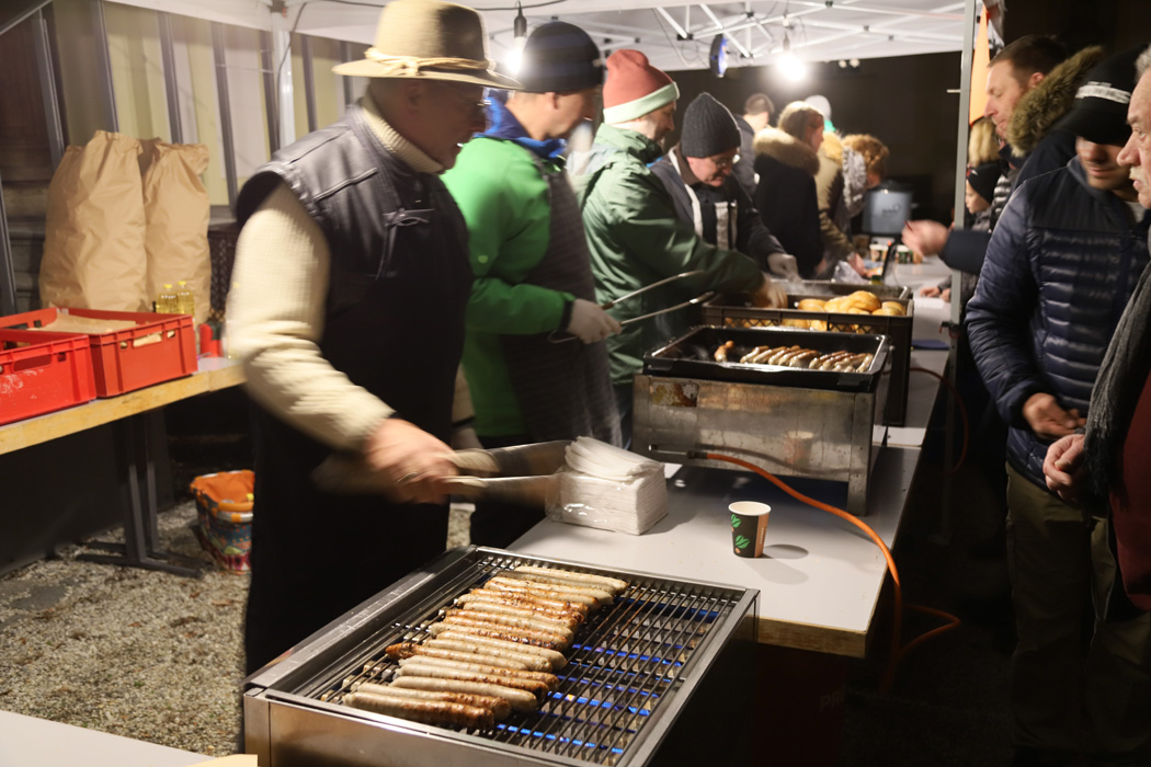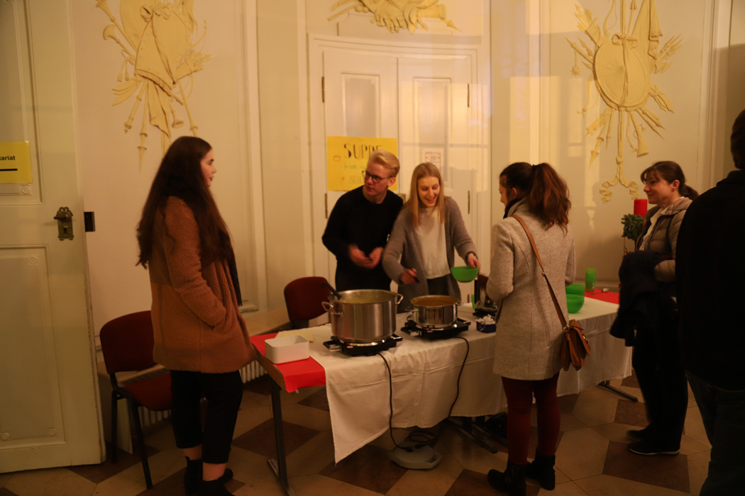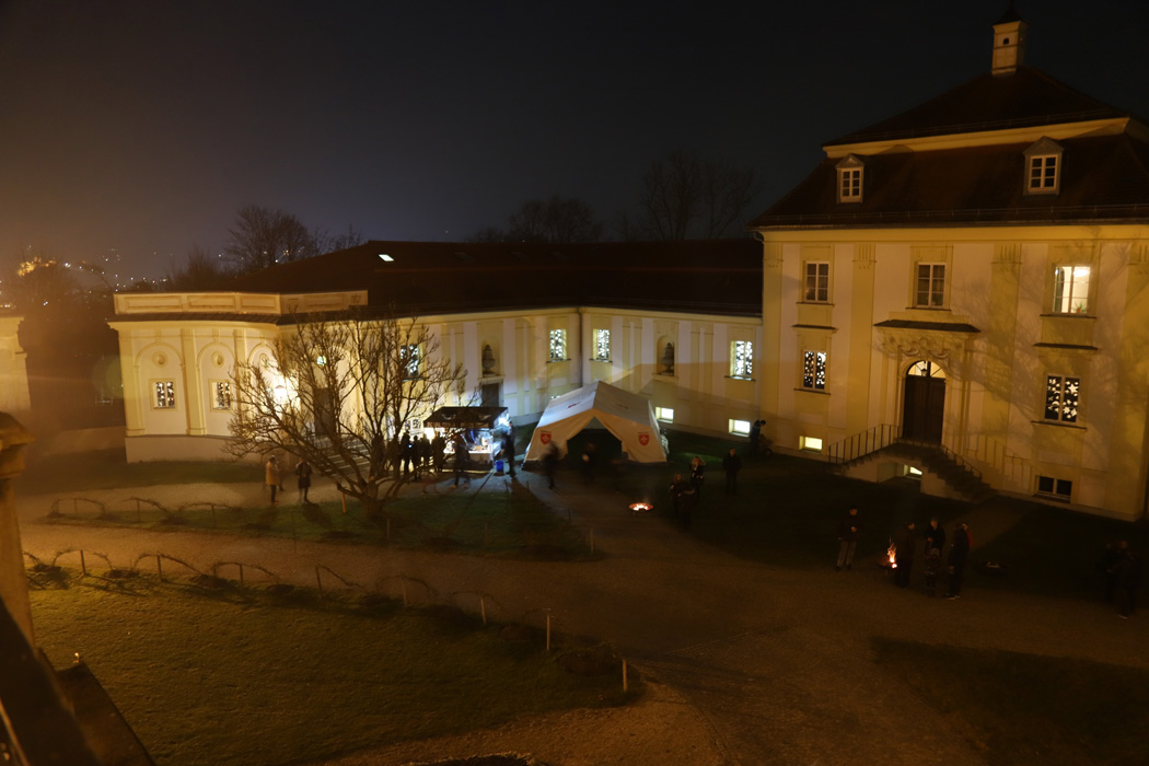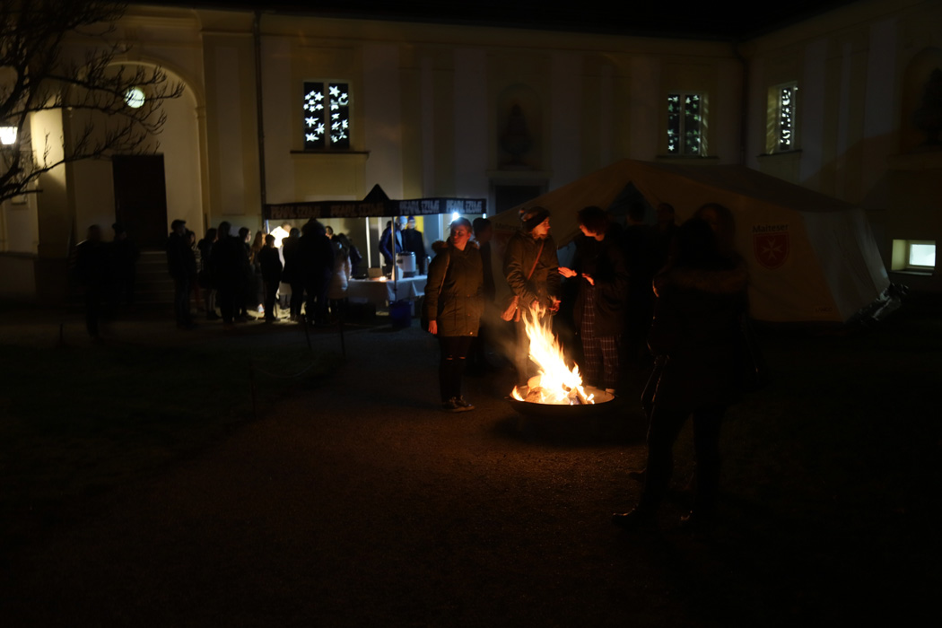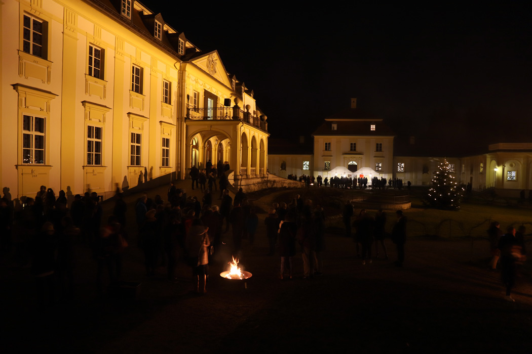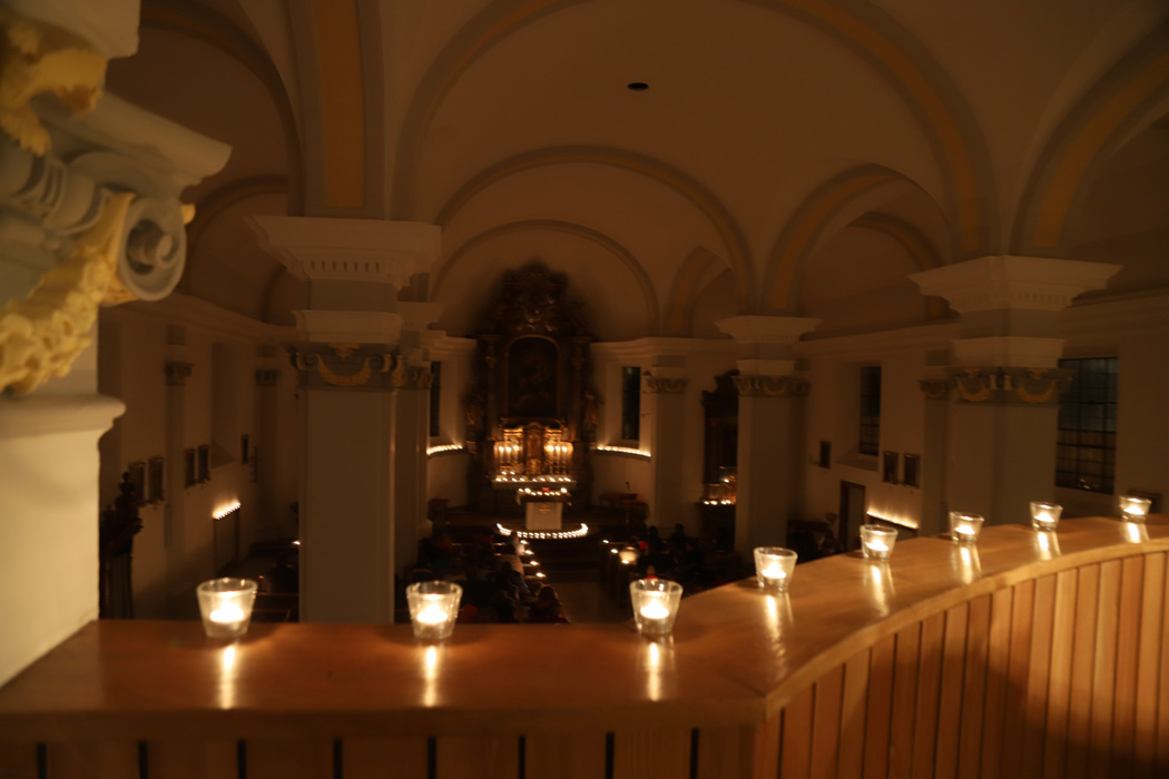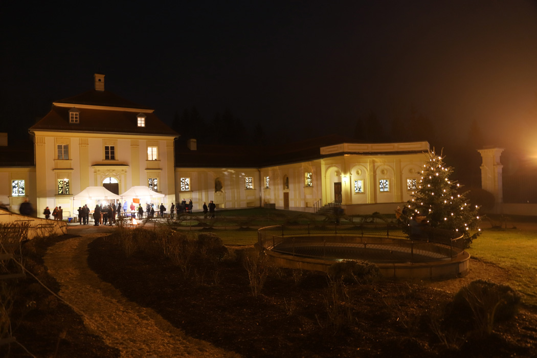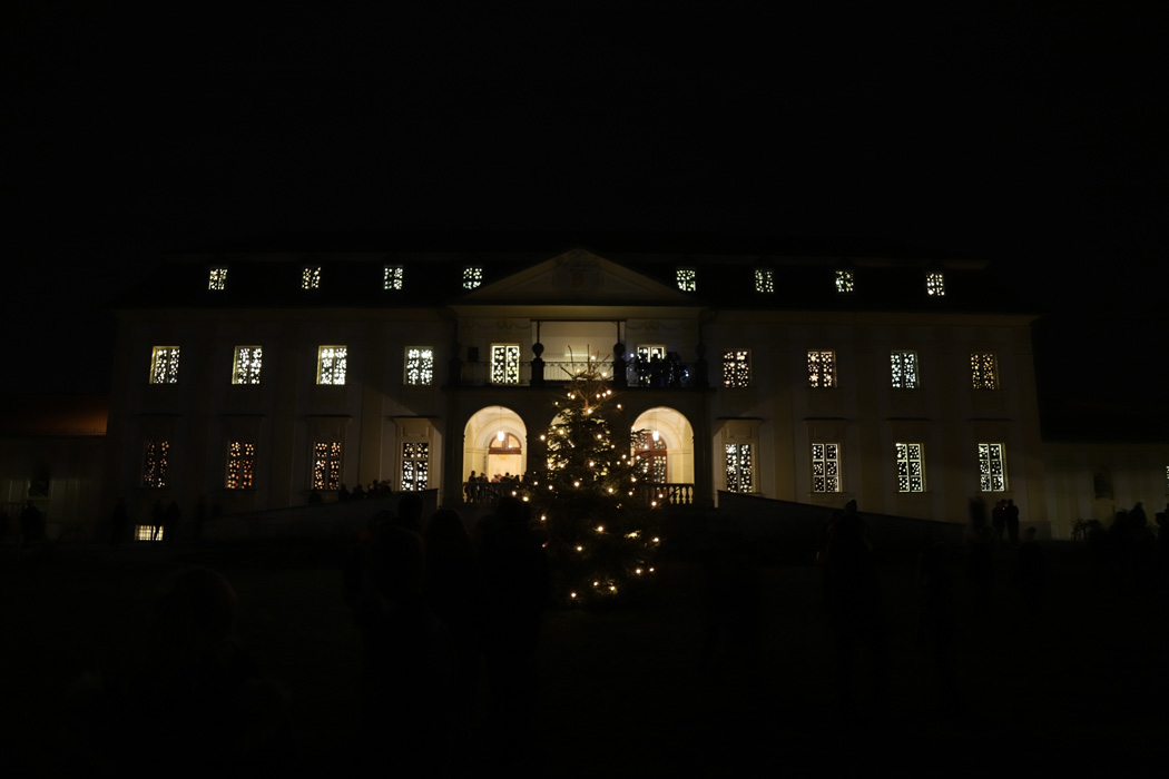 Außerdem konnte man um 18:00 oder um 20:15 Uhr einen weihnachtlichen Gottesdienst in der Schlosskapelle besuchen. Dabei wurden besinnliche Texte gelesen, umrahmt von englischen Weihnachtsliedern der Carol Singers unter der Leitung von Theresia Kollmann.