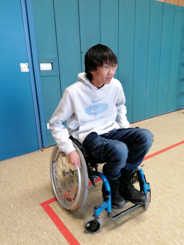 Zu Beginn gab es eine kurze Schulhausführung und danach mischten sich die Schüler*innen in kleinen Gruppen, um gemeinsam Schach zu spielen, wobei Anfänger von den Schüler*innen der Don Bosco Schule eine Einführung in das Spiel erhielten. Nachdem man gemeinsam die Pause im Freien mit viel Bewegung verbrachte, ging es in die Turnhalle, wo ein Rollstuhlparcour wartete. Es war eine eindrückliche Erfahrung zu erleben wie es sich im Rollstuhl anfühlt über Schrägen oder eine Wippe zu fahren. Am Ende gab es noch Gelegenheit, Rollstuhlbasketball zu spielen. Eine tolle Erfahrung für beide Seiten.
