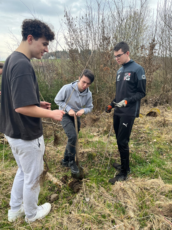 2024 Baumpflanzen 2Bei der Durchführung des Projekts konnten wir nicht nur die praktischen Aspekte kennenlernen, sondern wir erwarben auch wichtige Kompetenzen außerhalb des Unterrichts. Bei der Teilnahme an Ortsjugendausschuss-Sitzungen tauschten wir uns mit jungen Angestellten aus verschiedenen Betrieben aus und gewannen wertvolle Einblicke in die Berufswelt. Diese Erfahrung wird unseren Horizont erweitert und uns neue Perspektiven eröffnet.  Wir sind unglaublich glücklich, dass das Projekt erfolgreich war, und möchten uns herzlich bei allen Beteiligten bedanken, die uns sowohl beim Pflanzen als auch beim Planen unterstützt haben. Diese Aktion zeigt, wie viel wir als engagierte Jugendliche gemeinsam mit verschiedenen Organisationen für den Umweltschutz erreichen können.