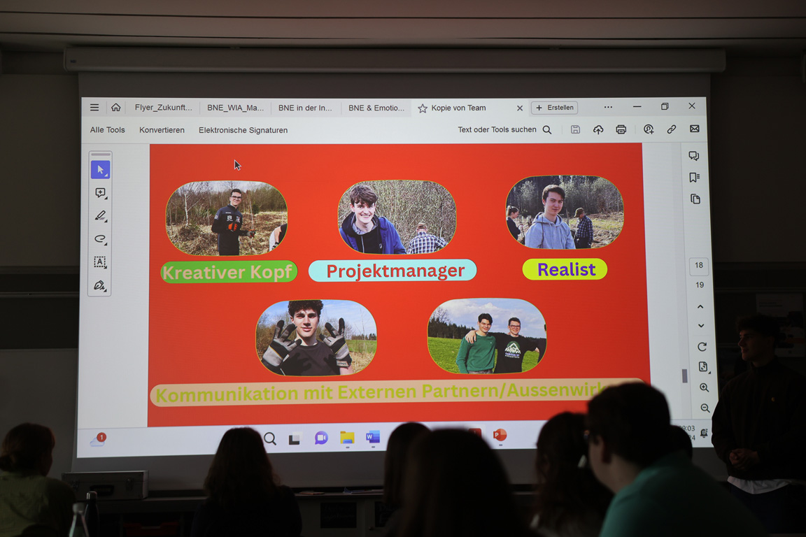 Unterstützt werden die Jugendlichen im Sommersemester durch Studierende der Universität Passau, die in Zukunft einmal in der Woche an einem BNE-Seminar teilnehmen, das ganz konkret in der FreiDay Zeit am Auersperg-Gymnasium stattfindet. Geleitet wird das Seminar von Michaela Würdinger-Gaidas und Prof. Dr. Eberth von der Universität Passau, deren Ziel es ist, dass Lehramtsstudierende sich mit BNE-Fragestellungen auseinandersetzen und BNE-Unterrichtsformen kennenlernen.