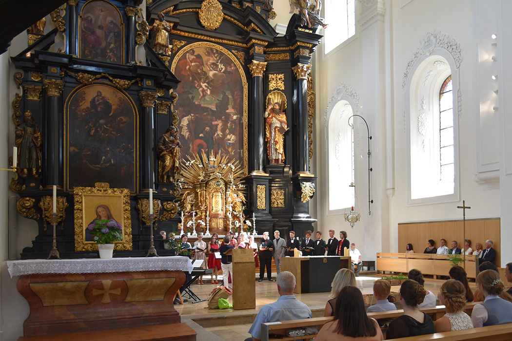 Die eigentliche Abiturfeier fand am Samstag, den 30. Juni statt. Nach dem feierlichen Gottesdienst in der Stadtpfarrkirche St. Paul ging's zum Gruppenfoto vor das Rathaus. Es schloss sich der Festakt im Rathaussaal mit der Verleihung der Abiturzeugnisse an (PNP-Bericht erscheint am Montag). Der Festtag klang mit einer vergnüglichen Feier in der Uni-Mensa aus.