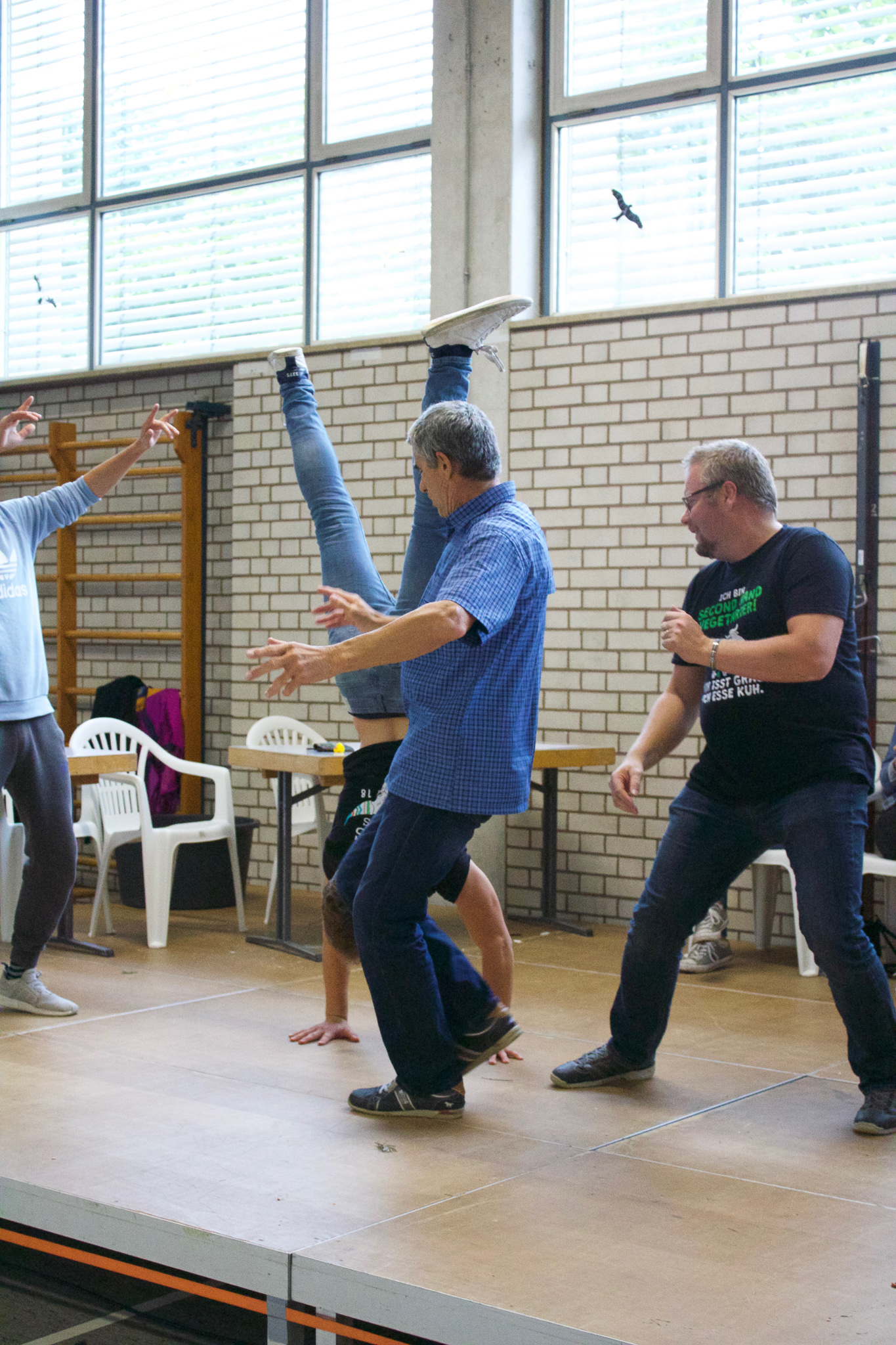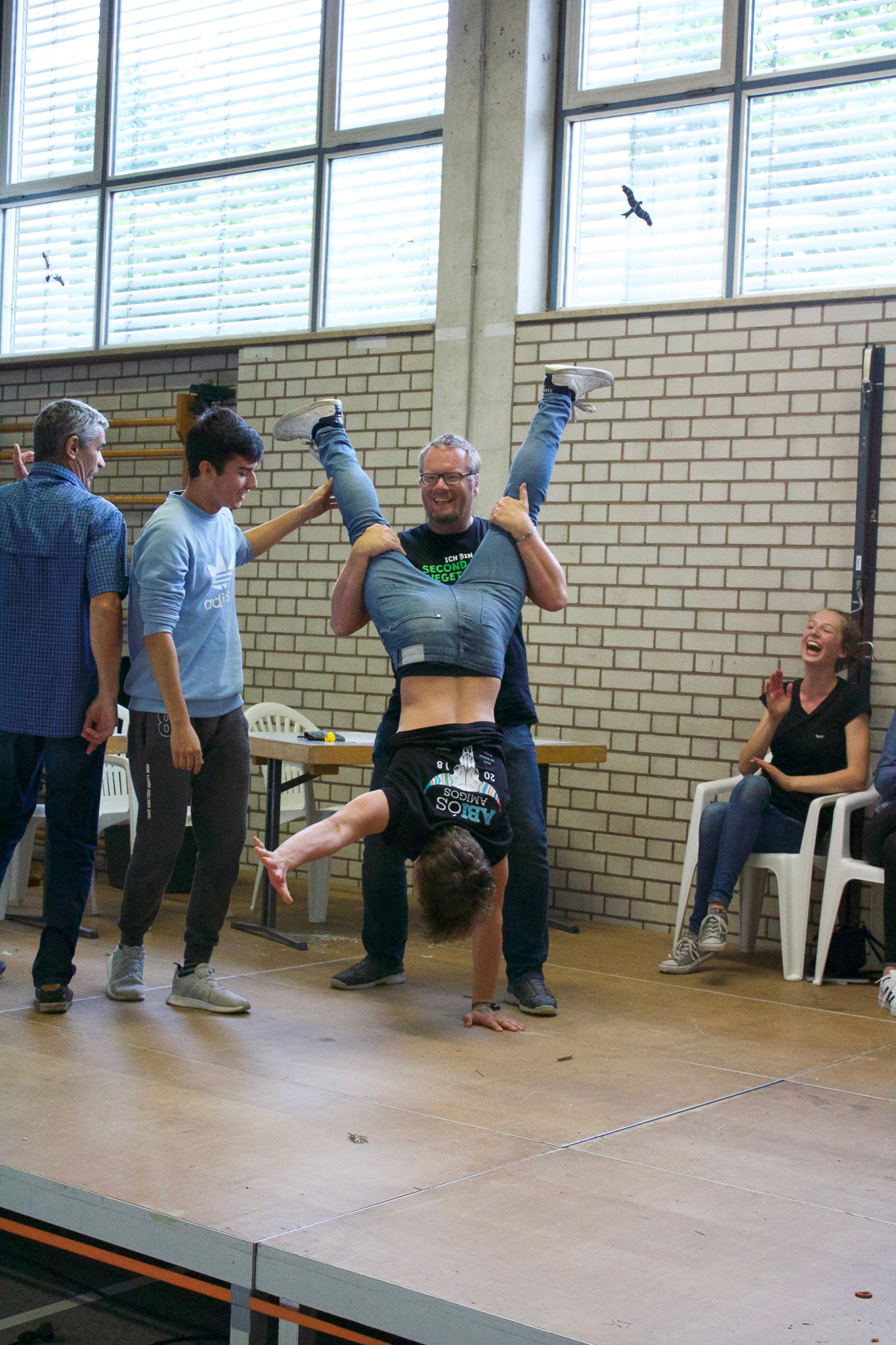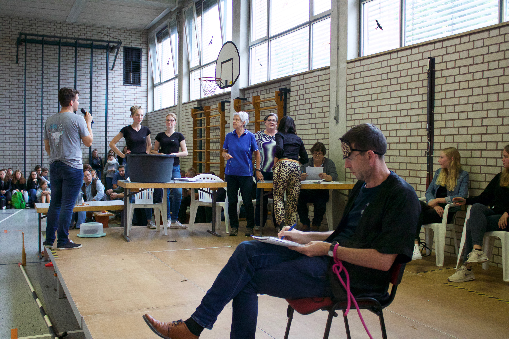 Auf dem Stundenplanbildschirm lief an diesem Morgen die Reklame für die Abizeitung und nach der Pasue wurde der Direktor in Gewahrsam genommen und in die Turnhalle abgeführt. Es war die Aufgabe des Lehrerkollegiums, ihn durch einen Parcours, bei dem die Lehrer gegen Schüler der Unter- und Mittelstufe antraten, auszulösen. Das gelang natürlich nicht, weil aus Sicht der Lehrer die Punktevergabe sehr kreativ war. Da blieb Herrn Zitzl nur noch übrig, sich durch ein selbstverfasstes Gedicht selbst zu retten. Mit einem Essen für das Lehrerkollegium endete die Aktion der Abiturienten. Insgesamt ein gelungener Streich, an dem alle Freude hatten.