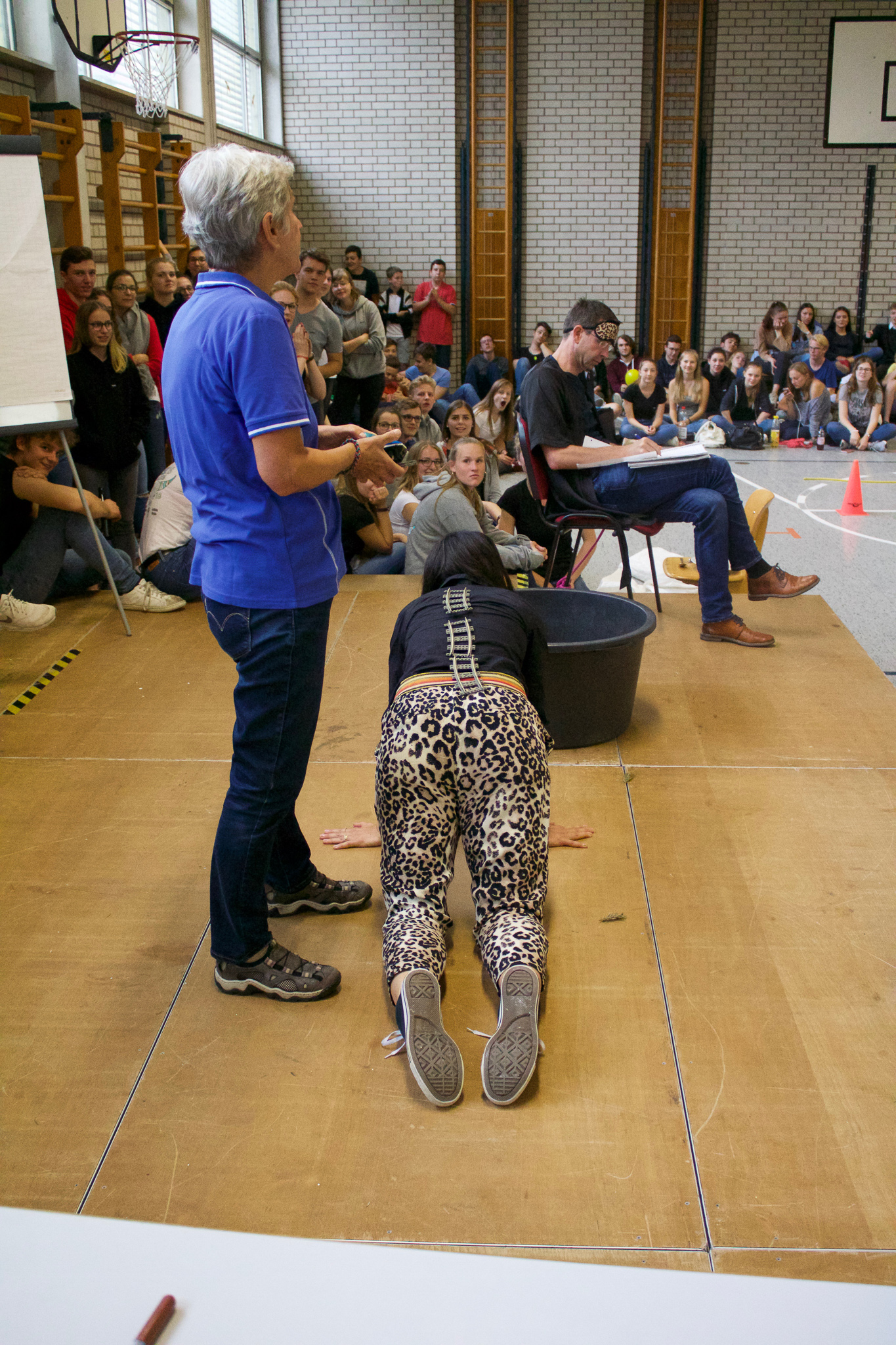 Einen besonderen Grund zu feiern hatten die Abiturienten, da es in diesem Jahr wieder einmal alle geschafft haben, sodass die Fahne herausgehängt werden konnte. Mit einem gelungenen Abistreich verabschiedete sich der Jahrgang am 28. Juni von den Mitschülern und vom Lehrerkollegium. Die Nacht vorher hatten sie schon genutzt, um den Neubau mit den Kopien zu verhüllen, die sie in der Oberstufe ausgeteilt bekommen haben. Angeblich reichten dazu die Kopien von zwei Abiturientinnen.