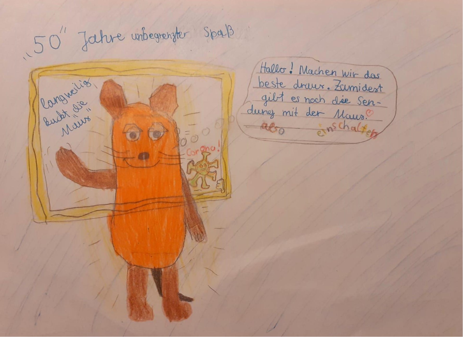 F073F0868186436B9887688128FE7E5D 2Die Zeitung „Am Sonntag“ hatte im März einen Malwettbewerb zum 50. Geburtstag der Maus ausgeschrieben und Christian Schöttner, der die drei fünften Klassen in Kunst unterrichtet, reichte diese Idee als freiwillige Arbeit im Rahmen des Kunstunterrichts an seine Schüler weiter.