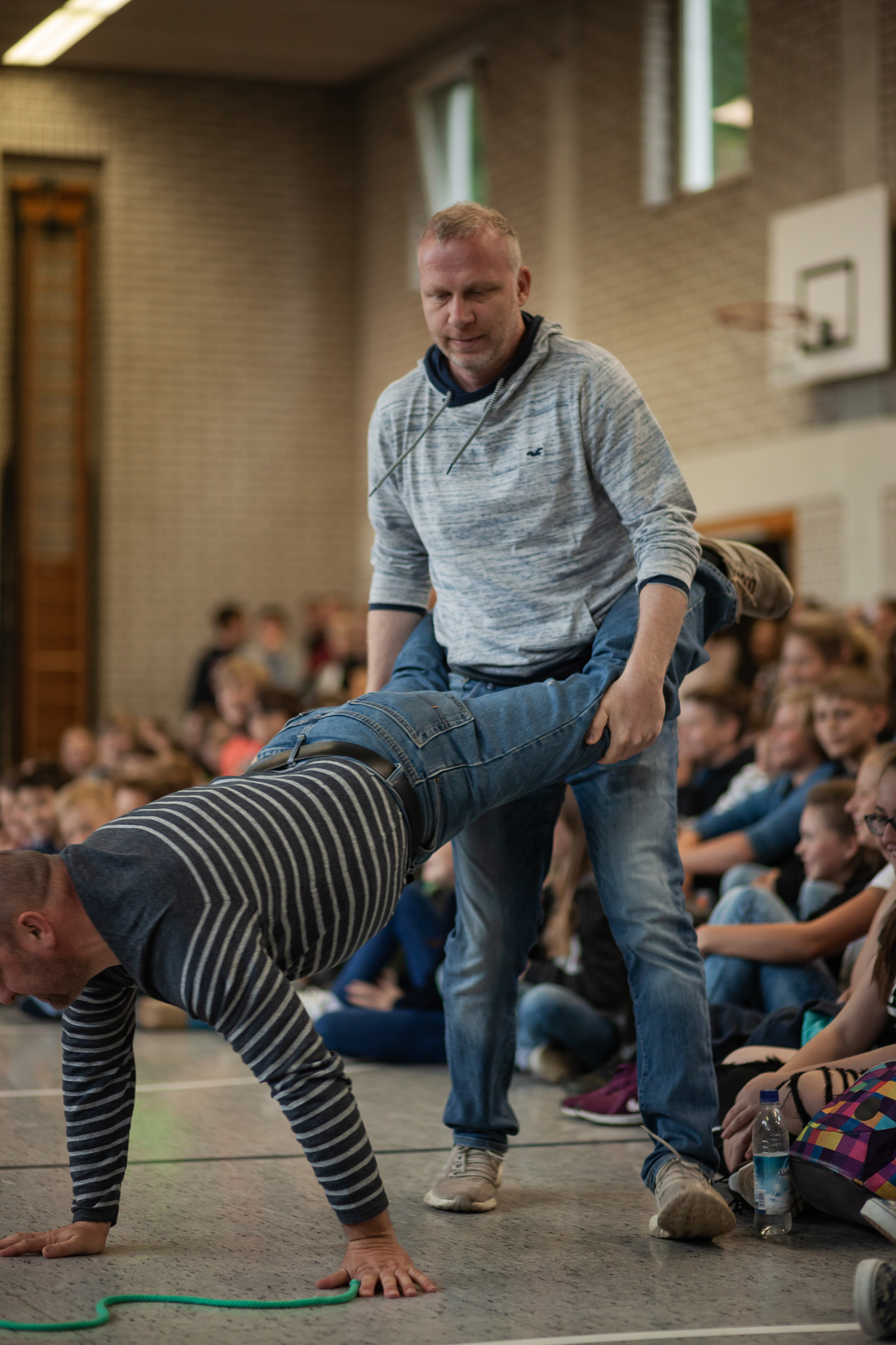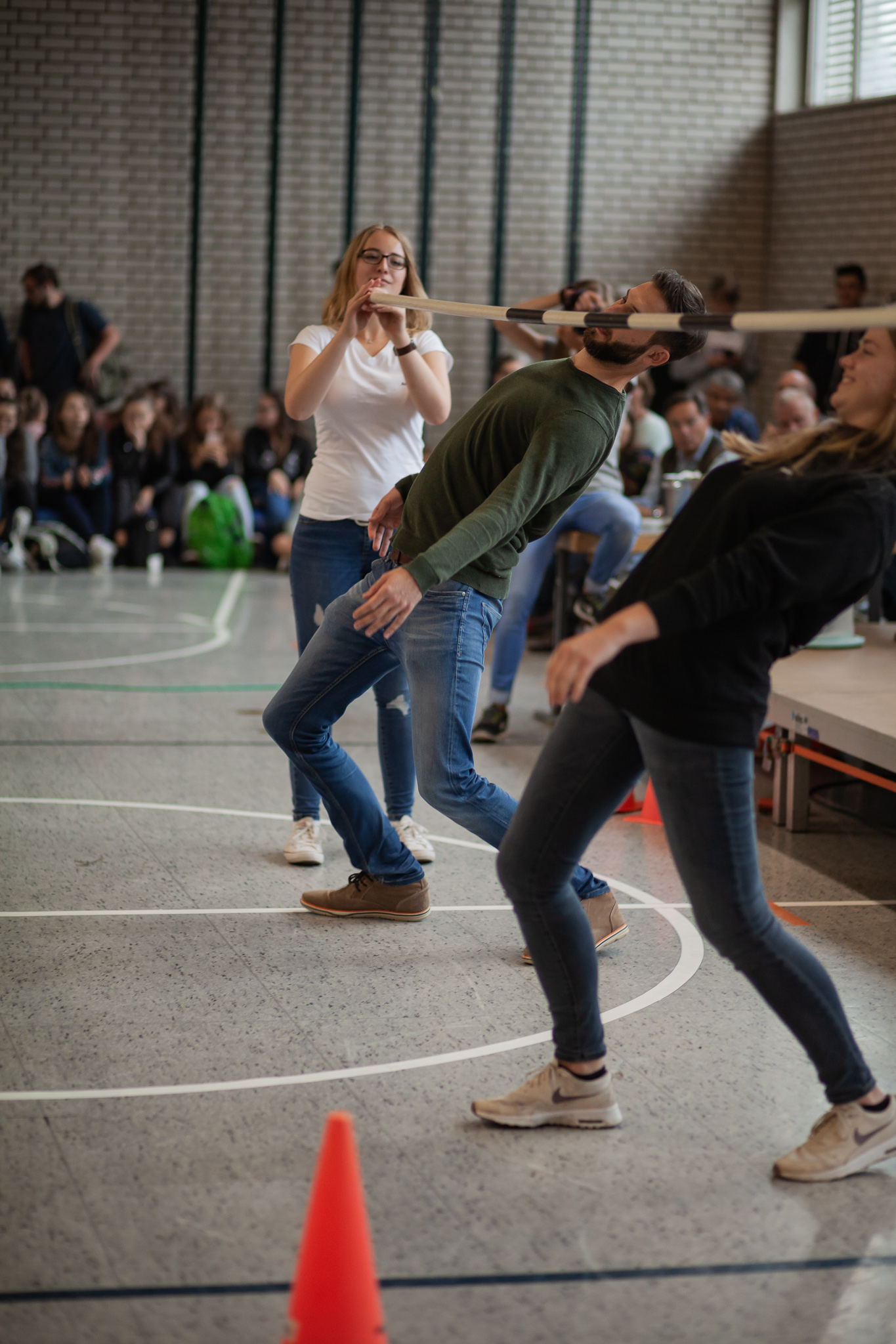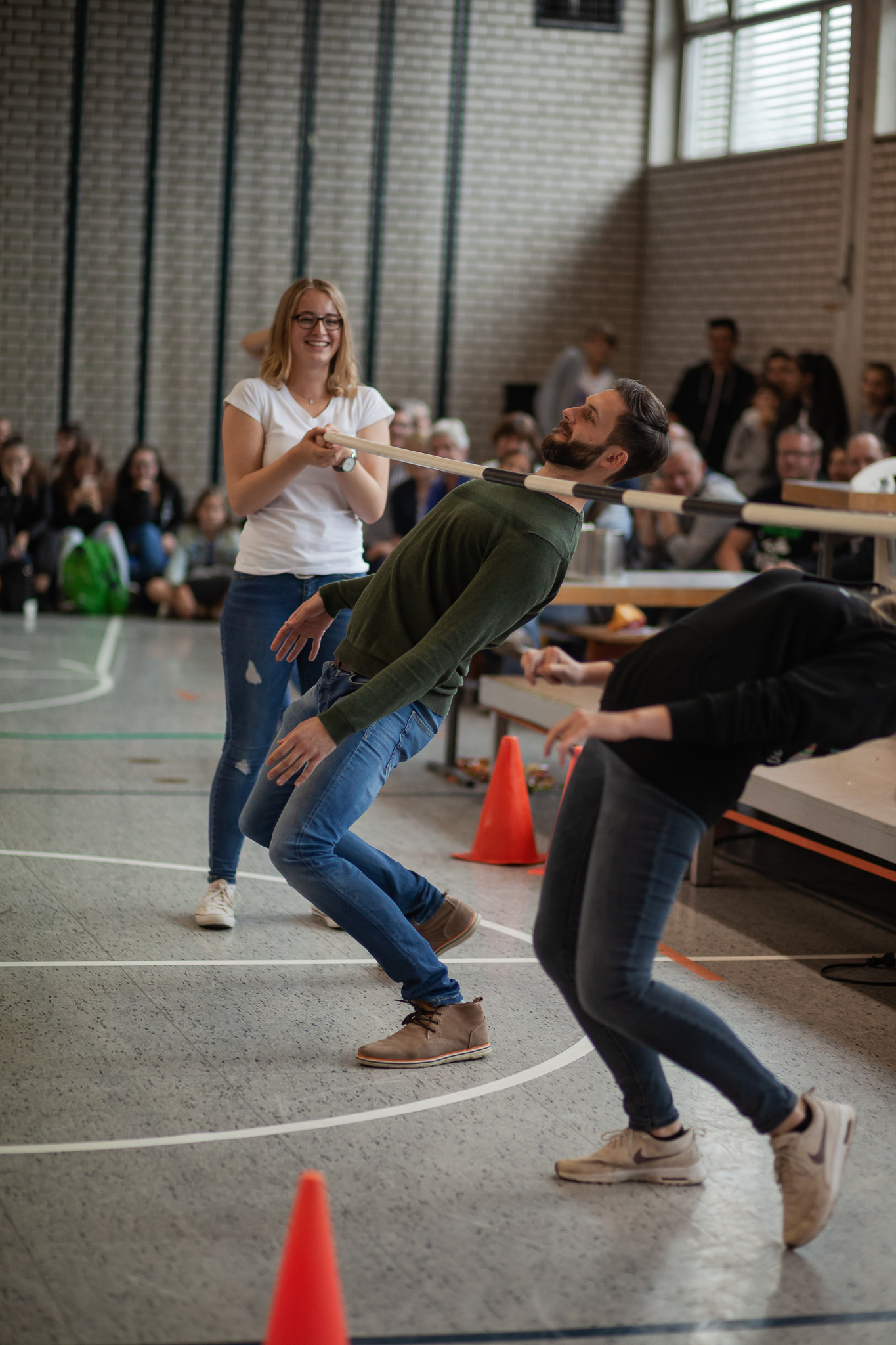 Einen besonderen Grund zu feiern hatten die Abiturienten, da es in diesem Jahr wieder einmal alle geschafft haben, sodass die Fahne herausgehängt werden konnte. Mit einem gelungenen Abistreich verabschiedete sich der Jahrgang am 28. Juni von den Mitschülern und vom Lehrerkollegium. Die Nacht vorher hatten sie schon genutzt, um den Neubau mit den Kopien zu verhüllen, die sie in der Oberstufe ausgeteilt bekommen haben. Angeblich reichten dazu die Kopien von zwei Abiturientinnen.