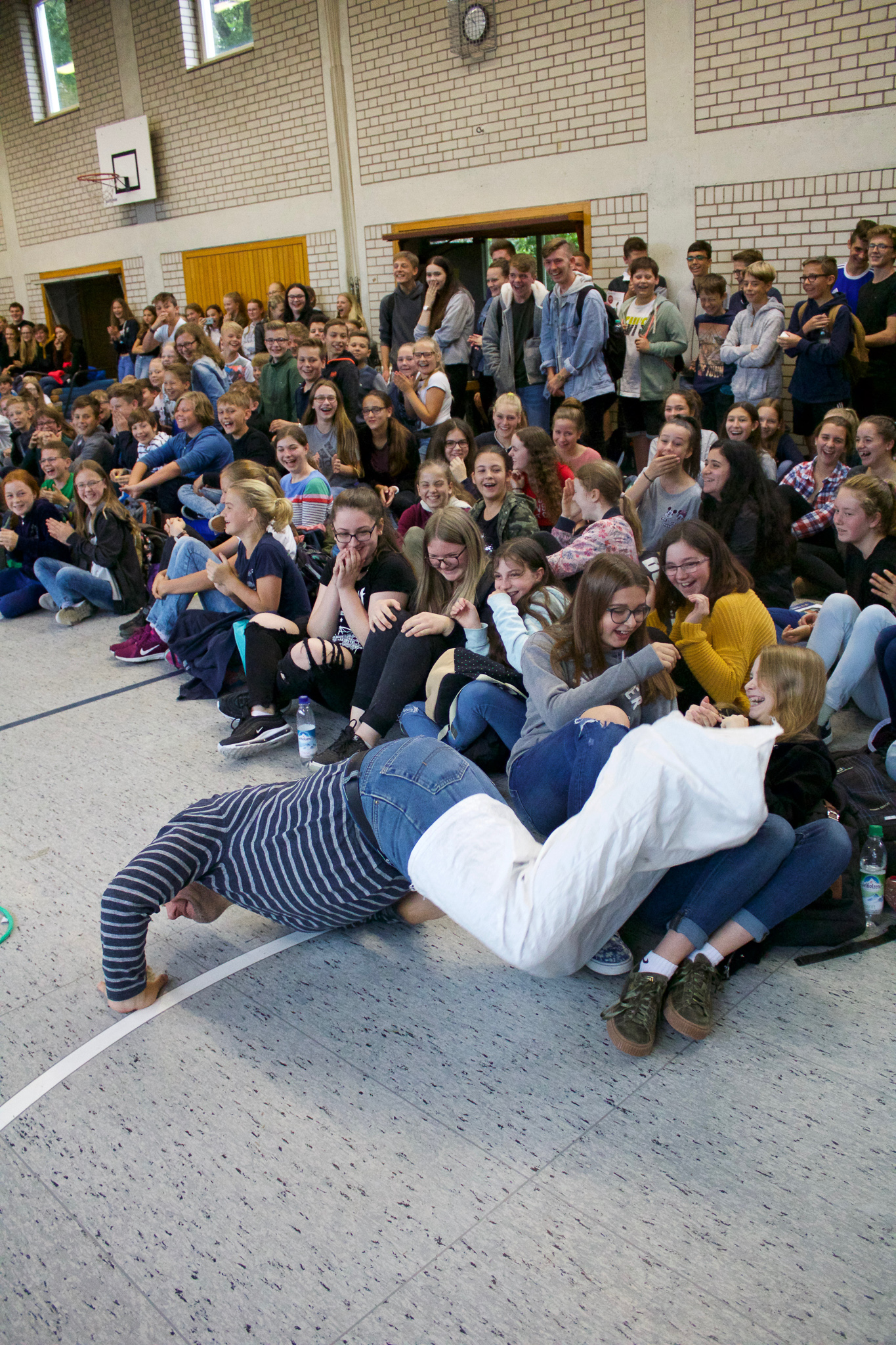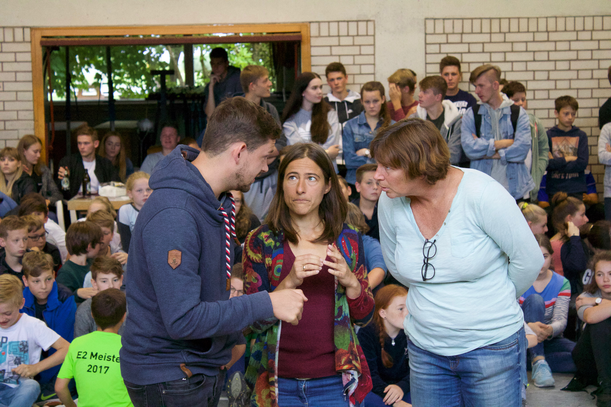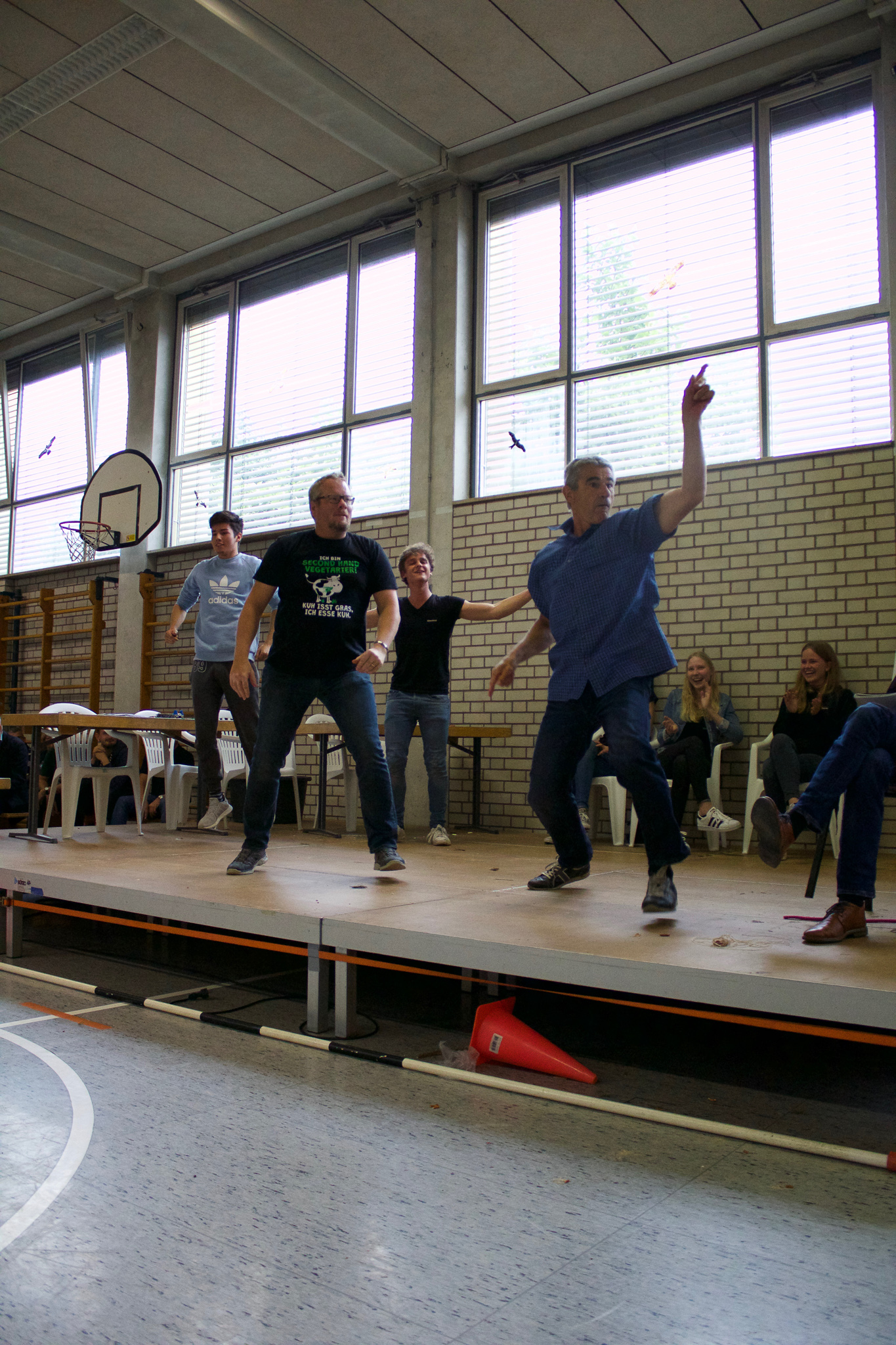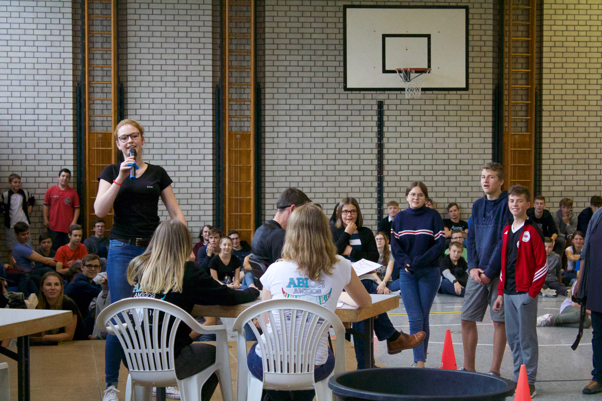 Einen besonderen Grund zu feiern hatten die Abiturienten, da es in diesem Jahr wieder einmal alle geschafft haben, sodass die Fahne herausgehängt werden konnte. Mit einem gelungenen Abistreich verabschiedete sich der Jahrgang am 28. Juni von den Mitschülern und vom Lehrerkollegium. Die Nacht vorher hatten sie schon genutzt, um den Neubau mit den Kopien zu verhüllen, die sie in der Oberstufe ausgeteilt bekommen haben. Angeblich reichten dazu die Kopien von zwei Abiturientinnen.