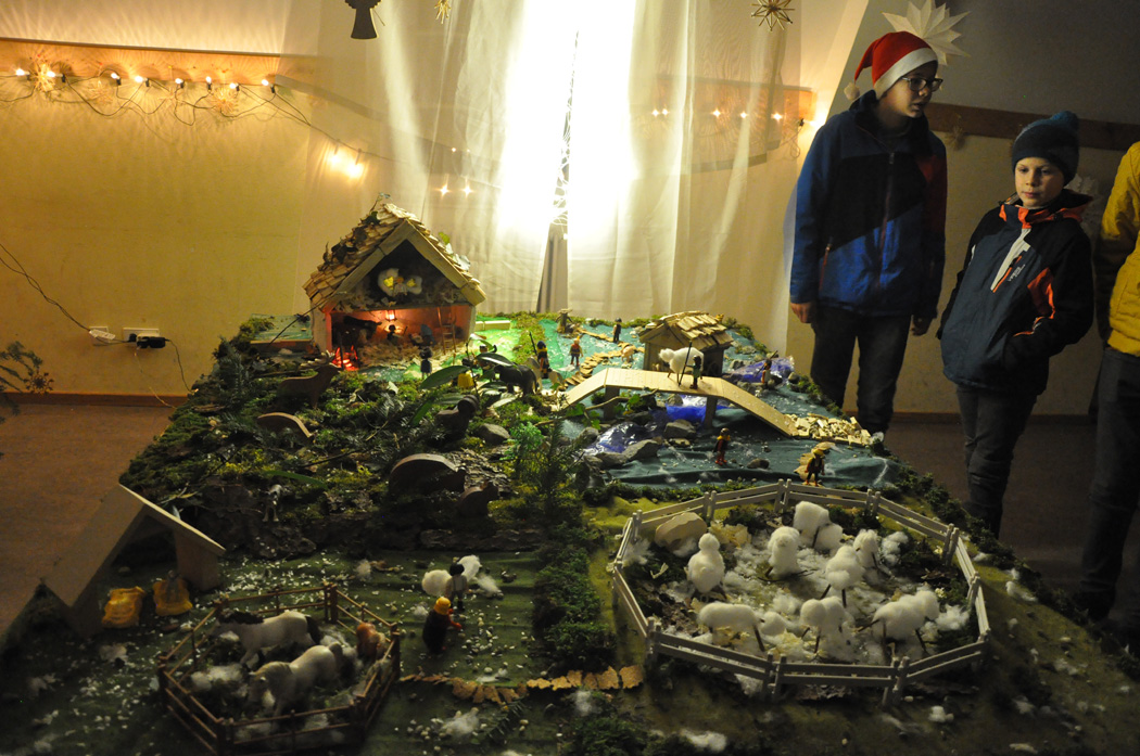 Das Projekt „Freudenhain leuchtet“ führte am Mittwochabend die gesamte Schulfamilie des Auersperg-Gymnasiums zu einer Weihnachtsfeier für alle Sinne zusammen. Nach Einbruch der Dunkelheit strömten die Schüler mit ihren Familien, aber auch Ehemalige und Freunde aufs Schulgelände. Die 5. und 6. Klassen boten bei einem bunten Basar im Festsaal Selbstgebackenes und Selbstgebasteltes an. Alle 7. bis 10. Klassen hatten in ihren Klassenzimmern Krippen aufgebaut, die zu einem Spaziergang durch das weihnachtlich geschmückte Schulgebäude animierten. Stärken konnte man sich im Schlosshof mit großzügig von der Metzgerei Brodinger gestifteten Bratwürsten, Gemüsesuppe und Punsch. Der Erlös aller Verkäufe wird zusammen mit den beim Weihnachtskonzert gegebenen Spenden der Passauer Tafel zugutekommen.