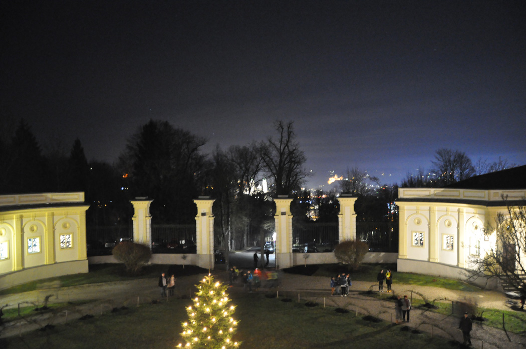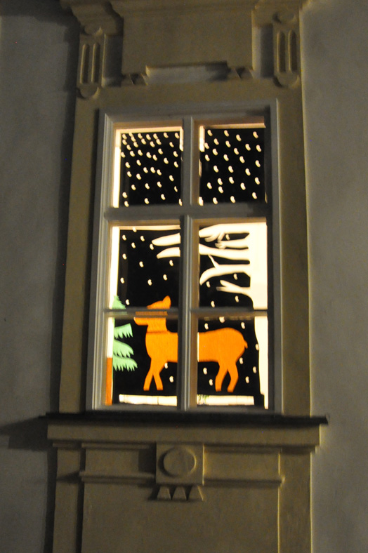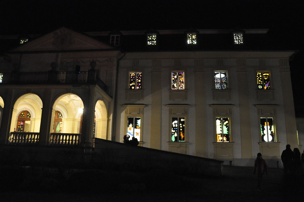 Sterntaler“ stimmte alle Besucher auf das Fest der Liebe und des Gebens ein. Dann wurden nacheinander die Fenster der Hauptfassade erhellt und zauberten Winterlandschaften, weihnachtliche Motive und einen Sternenhimmel herbei. In mühevoller Schneide- und Klebearbeit hatte jede Klasse ein Fenster des Schlossgebäudes gestaltet, das nun als Ganzes den Zusammenhalt der Schulfamilie symbolisierte, die das Weihanchtsfest freudig erwartet.