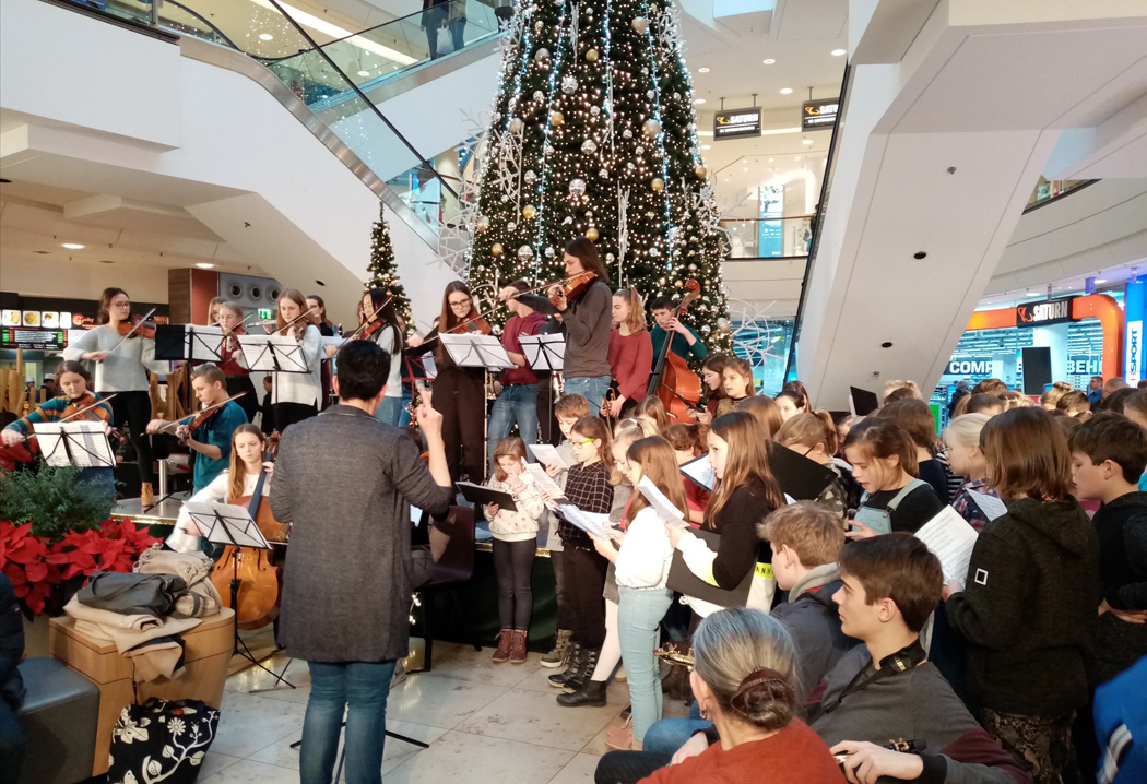 Diese Weihnachtsstimmung war schon zuvor von den Freudenhainer Schülern nach außen getragen worden. So spielte die Blechbläserformation „Freudenblech“ am dritten Adventswochenende auf dem Christkindlmarkt, am Donnerstagnachmittag traten mehrere Ensembles in der Stadtgalerie auf und ließen dabei viele Passanten im Einkaufsstress aufhorchen und innehalten. Auch Oberbürgermeister Jürgen Dupper und Landrat Franz Mayer überbrachte man musikalische Weihnachtsgrüße. Den Schlussakkord setzte schließlich in der Kirche St. Peter am Donnerstagabend das große Weihnachtskonzert der Freudenhainer Chöre und Instrumentalensembles.