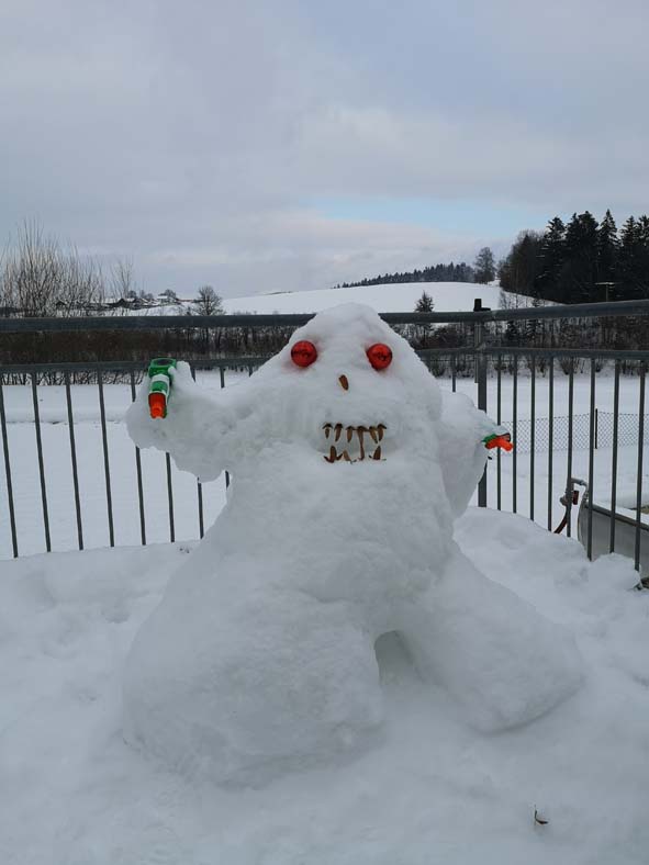 „Die Not macht erfinderisch“ – auch im Sportunterricht. Daher rief die Fachschaft Sport in diesem Jahr zu einem sportlichen Wettbewerb der besonderen Art auf: die Schneemann-Challenge. Ziel des Wettbewerbs war es, sich beim Schneemannbauen körperlich und kreativ zu verausgaben, um sich trotz der Einschränkungen während der Corona-Pandemie mit Spaß und Freude an der frischen Luft zu verausgaben. Nachdem uns so viele tolle Bilder aus allen Jahrgangsstufen erreicht haben, war es nicht leicht, daraus die besten Schneefiguren auszuwählen. Unter die Top 3 schafften es schließlich Julian Pretzel und Fabian Wolf (beide Q11) sowie Jasmin Szabó(6b) auf Platz 3, Isalie Matheis(8b) auf Platz 2 (Foto li.) und Jonas Espenberger (8b) auf Platz 1 Herzlichen Glückwunsch!