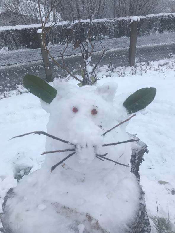 „Die Not macht erfinderisch“ – auch im Sportunterricht. Daher rief die Fachschaft Sport in diesem Jahr zu einem sportlichen Wettbewerb der besonderen Art auf: die Schneemann-Challenge. Ziel des Wettbewerbs war es, sich beim Schneemannbauen körperlich und kreativ zu verausgaben, um sich trotz der Einschränkungen während der Corona-Pandemie mit Spaß und Freude an der frischen Luft zu verausgaben. Nachdem uns so viele tolle Bilder aus allen Jahrgangsstufen erreicht haben, war es nicht leicht, daraus die besten Schneefiguren auszuwählen. Unter die Top 3 schafften es schließlich Julian Pretzel und Fabian Wolf (beide Q11) sowie Jasmin Szabó(6b) auf Platz 3, Isalie Matheis(8b) auf Platz 2 (Foto li.) und Jonas Espenberger (8b) auf Platz 1 Herzlichen Glückwunsch!