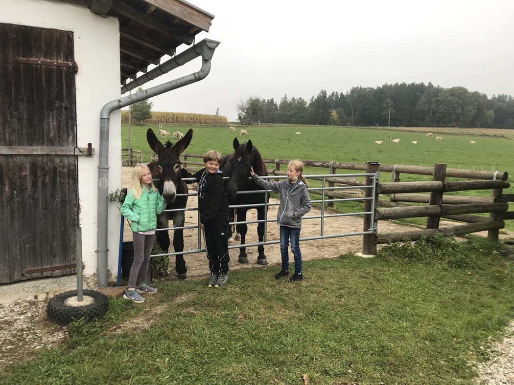 Auch dieses Jahr unternahmen die 5.Klassen, wie es in Freudenhain Tradition ist, einen Ausflug auf den Bauernhof von Familie Mödder in Gangkofen. Ziel war es, sich näher kennen zu lernen und die Klassengemeinschaft zu stärken. Leider war coronabedingt nicht viel Zeit dafür. Was unter normalen Umständen eine Woche dauern darf, musste pandemiebedingt auf drei Tage verkürzt stattfinden. Frau Kramer und Herr Haberl sowie die Tutoren Alene und Benedikt machten am 29.09.21 mit der 5b den Anfang.