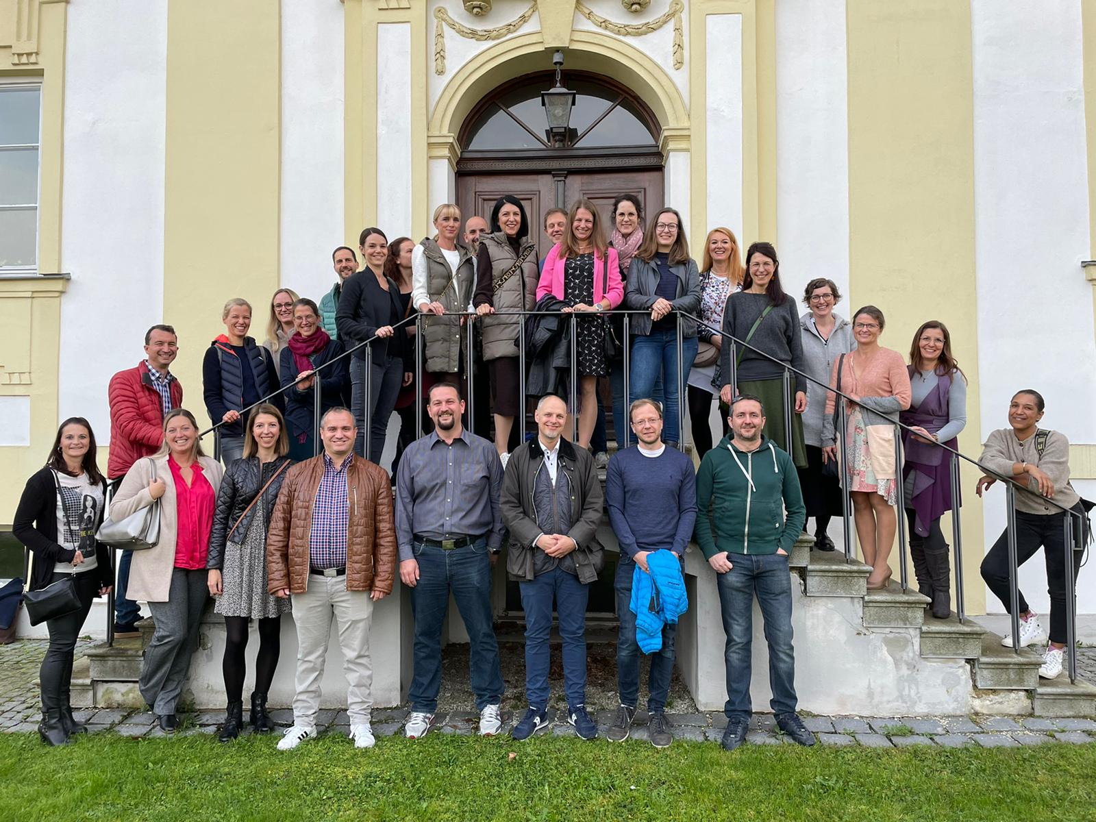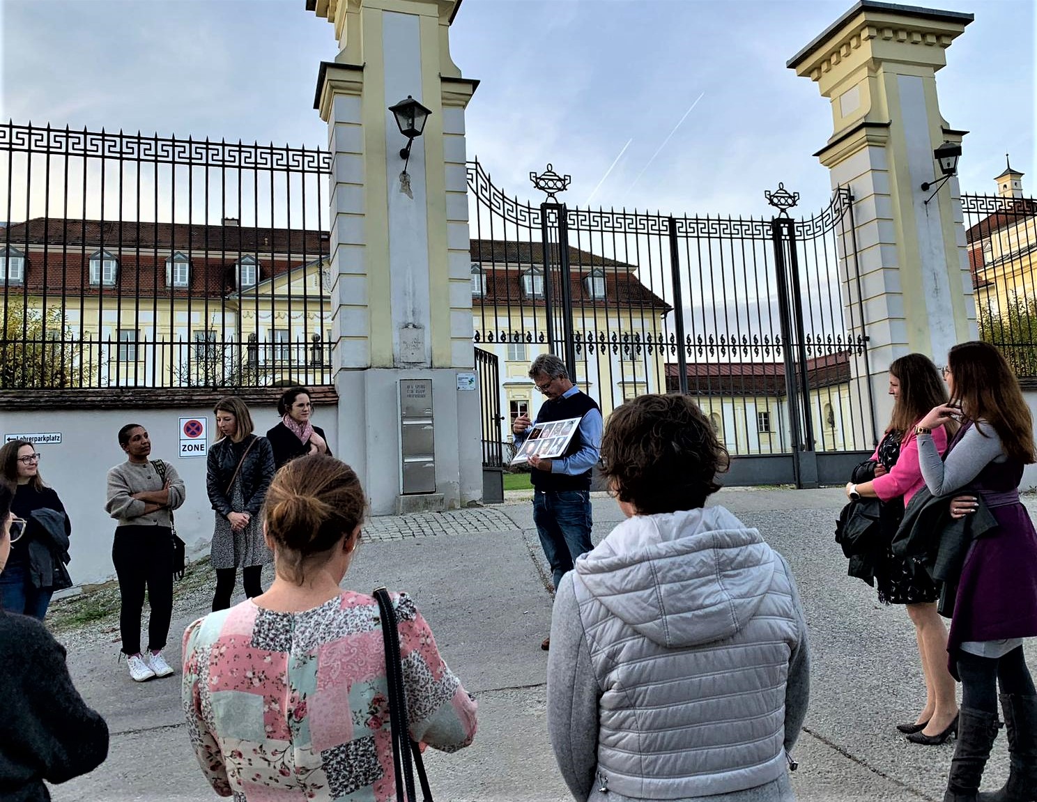 Als mich unsere ehemalige Schülerin Maria Perner, geborene Hager, kontaktierte, um mich zu fragen, ob ich für das Treffen ihres Abiturjahrgangs 2002 eine Freudenhainführung machen könnte, kam ich ihrer Bitte selbstverständlich gerne nach, ja ich freute mich sogar sehr auf die Begegnung mit Schülerinnen und Schülern, von denen ich viele vor zwanzig und mehr Jahren unterrichten durfte. Um mich auf das Treffen vorzubereiten, durchforstete ich alte Jahresbericht nach Fotos der 28 Angemeldeten. Dennoch war ich überrascht, dass ich so viele der inzwischen 40-Jährigen auf den ersten Blick wiedererkannte. Während unseres historischen Rundgangs wurde den meisten bewusst, wie wenig sie über die Geschichte ihrer ehemaligen Schlossschule und deren Erbauer, Fürstbischof Kardinal Josef Franz Anton von Auersperg, wussten.
