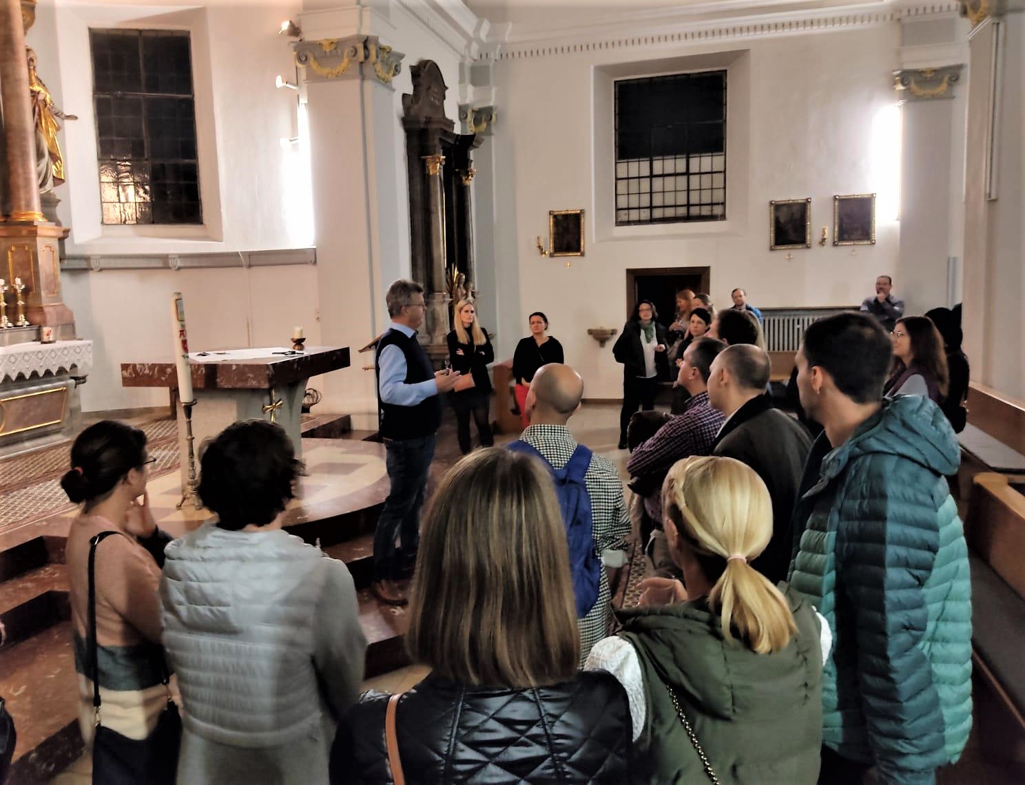 Viel zu erzählen gab es über die geistigen und politischen Umstände und Umwälzungen in Europa und Passau am Ende des 18. und am Beginn des 19. Jahrhunderts und darüber, wie Aufklärung, Säkularisation, Freimaurerei, das Ende des Hochstifts Passau sowie die Koalitionskriege mit und gegen Napoleon ihren Niederschlag in Schloss Freudenhain fanden. Aber auch die Rolle Auerspergs als Gestalter des Stadtbildes von Passau ist beleuchtet worden, auf sein Betreiben hin wurden das Stadttheater, das Krankenhaus, Schulen, die Innpromenade und Park Freudenhain erbaut bzw. umgestaltet. Schließlich wurde auch noch ein Schlaglicht auf die religiösen Reformen Auerspergs geworfen, die Passau zwischen Tradition und Moderne maßgeblich prägten. Nach so vielen geschichtlichen und kunsthistorischen Erläuterungen durfte am Ende auch der nostalgische Blick in verschiedene Fachräume, wie Chemie- und Physiksaal, Ignatius (früher Medienraum), Schlosskirche St.Josef und Turnhalle nicht fehlen. Nicht zuletzt damit war wohl für genügend Gesprächsstoff beim anschließenden geselligen Beisammensein im Gasthof Andorfer gesorgt.